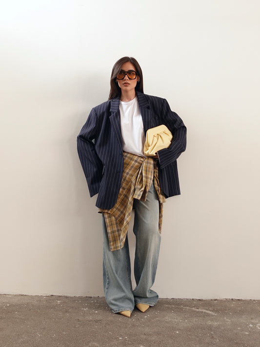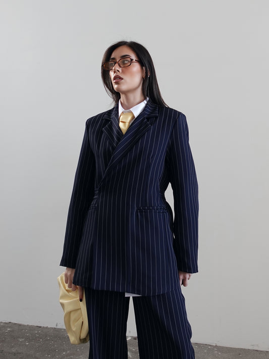 BLAZER GESSATO CON RISVOLTO A CONTRASTO - BLU 3141