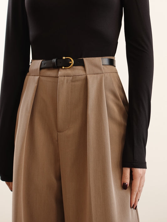 PANTALONI WIDE LEG CON CINTURA - TAUPE 16088