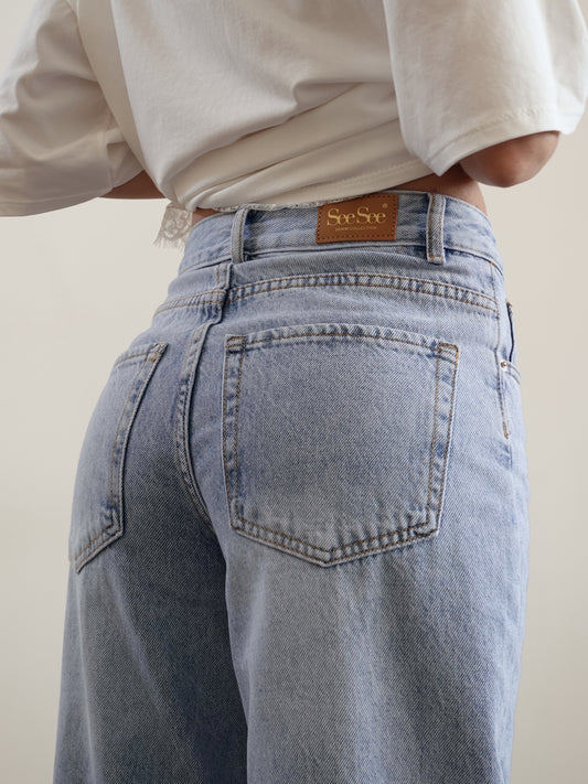 JEANS WIDE LEG BALLOON TAGLIO VIVO - LAVAGGIO MEDIO 3711
