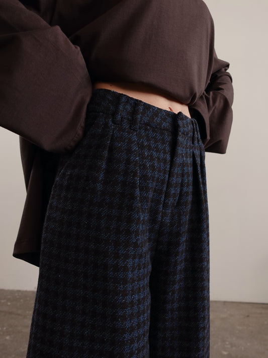 BERMUDA PIED DE POULE IN LANA - BLU/MARRONE 5978