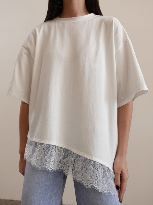 T-SHIRT CON FONDO IN PIZZO - BIANCO 1631