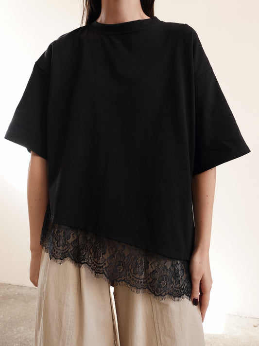 T-SHIRT CON FONDO IN PIZZO - NERO 1631