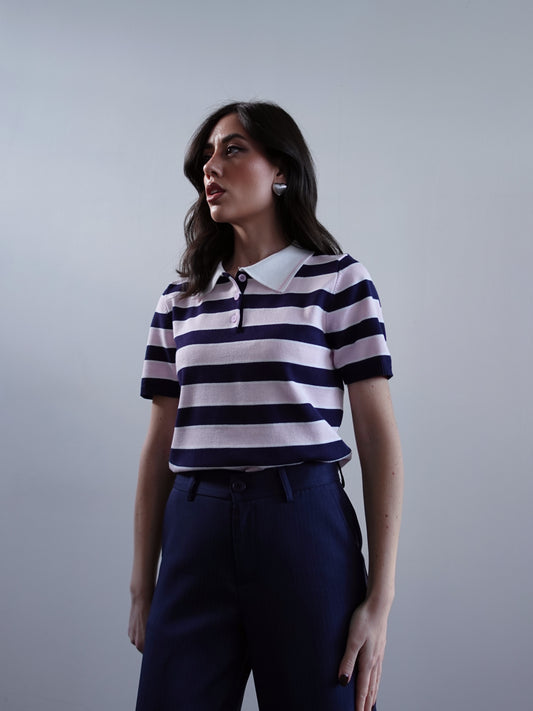 POLO MEZZA MANICA A RIGHE - ROSA/BLU 13263