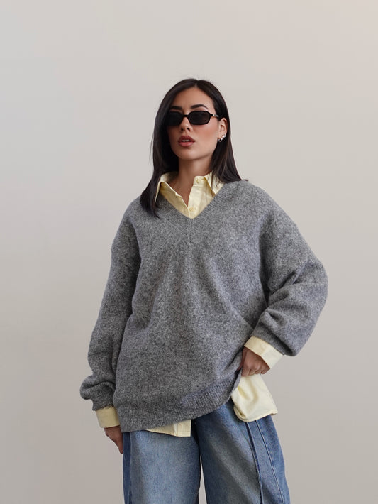 MAGLIONE BALLOON CON SCOLLO A "V" - GRIGIO 4297