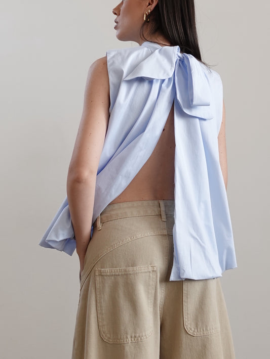BLUSA IN COTONE CON APERTURA SUL RETRO - AZZURRO 25055
