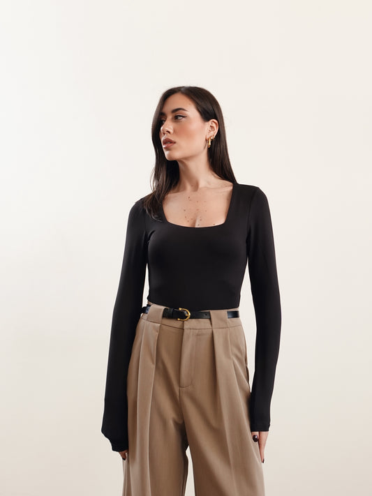 BODY SCOLLO QUADRATO A MANICA LUNGA - NERO Y713