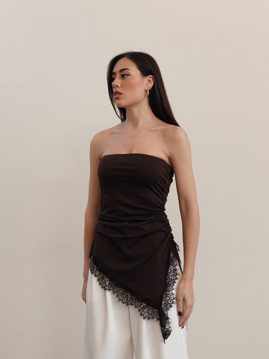 TOP LINGERIE CON PIZZO - MARRONE 46491