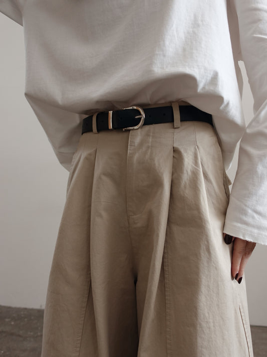 PANTALONI IN COTONE A PALAZZO CON CINTURA - BEIGE 14740