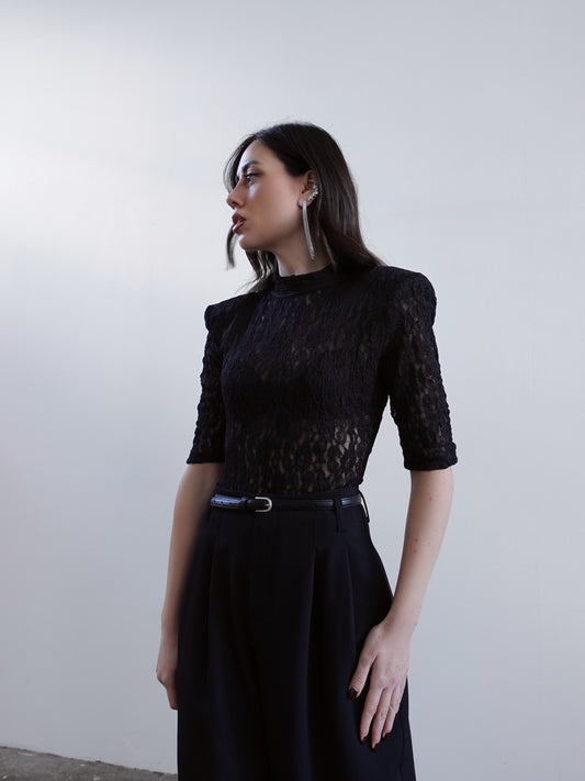 BODY IN PIZZO CON SPALLINE - NERO 11948