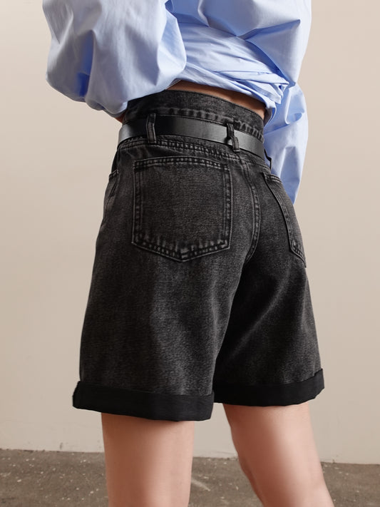 BERMUDA IN DENIM CON CINTURA - NERO SLAVATO 5310-2
