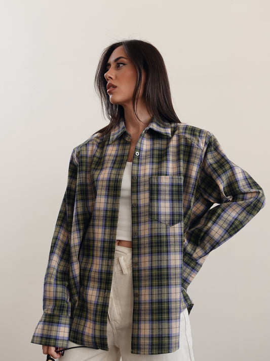 CAMICIA IN COTONE A QUADRI CON SPALLINE - VERDE/BEIGE