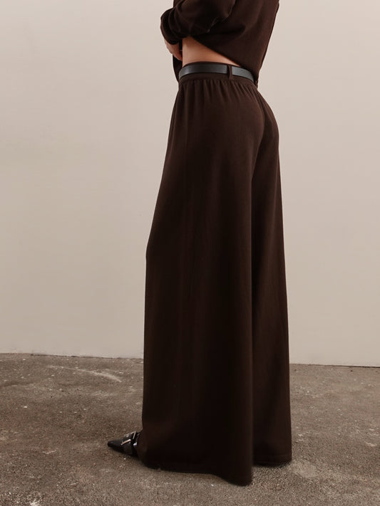 PANTALONI IN MAGLIA WIDE LEG CON CINTURA - MARRONE 15674