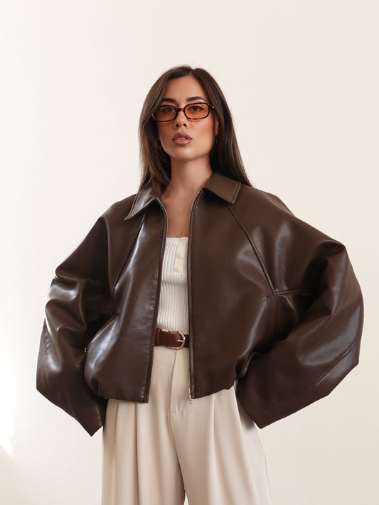 GIACCA IN ECOPELLE MURCIELAGO - MARRONE 7107
