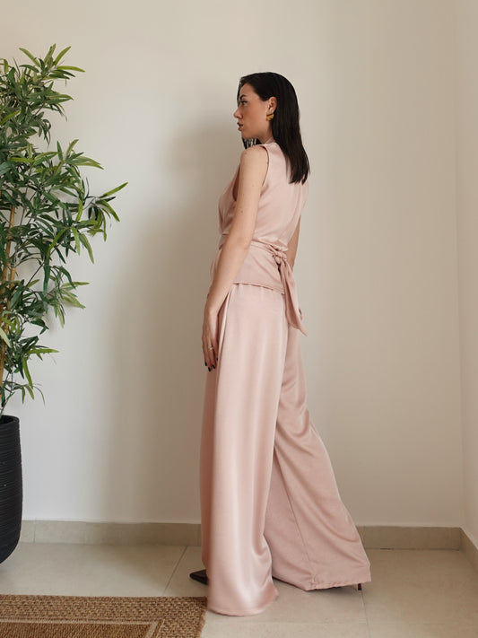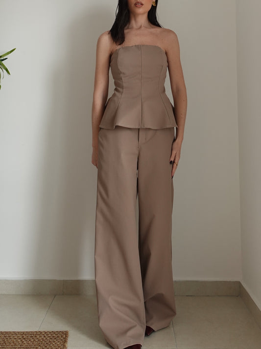 PANTALONI IN ECOPELLE WIDE LEG - BEIGE 19353