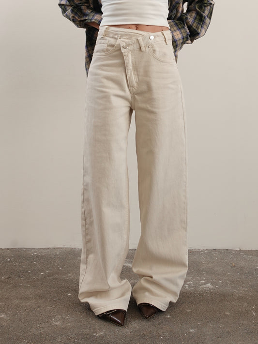 JEANS VITA ASIMMETRICA WIDE LEG - BEIGE 3581