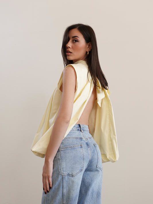 BLUSA IN COTONE CON APERTURA SUL RETRO - GIALLO 25055