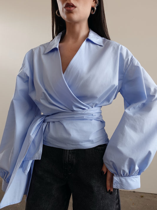 CAMICIA IN COTONE CON NODO LATERALE - AZZURRO 80891