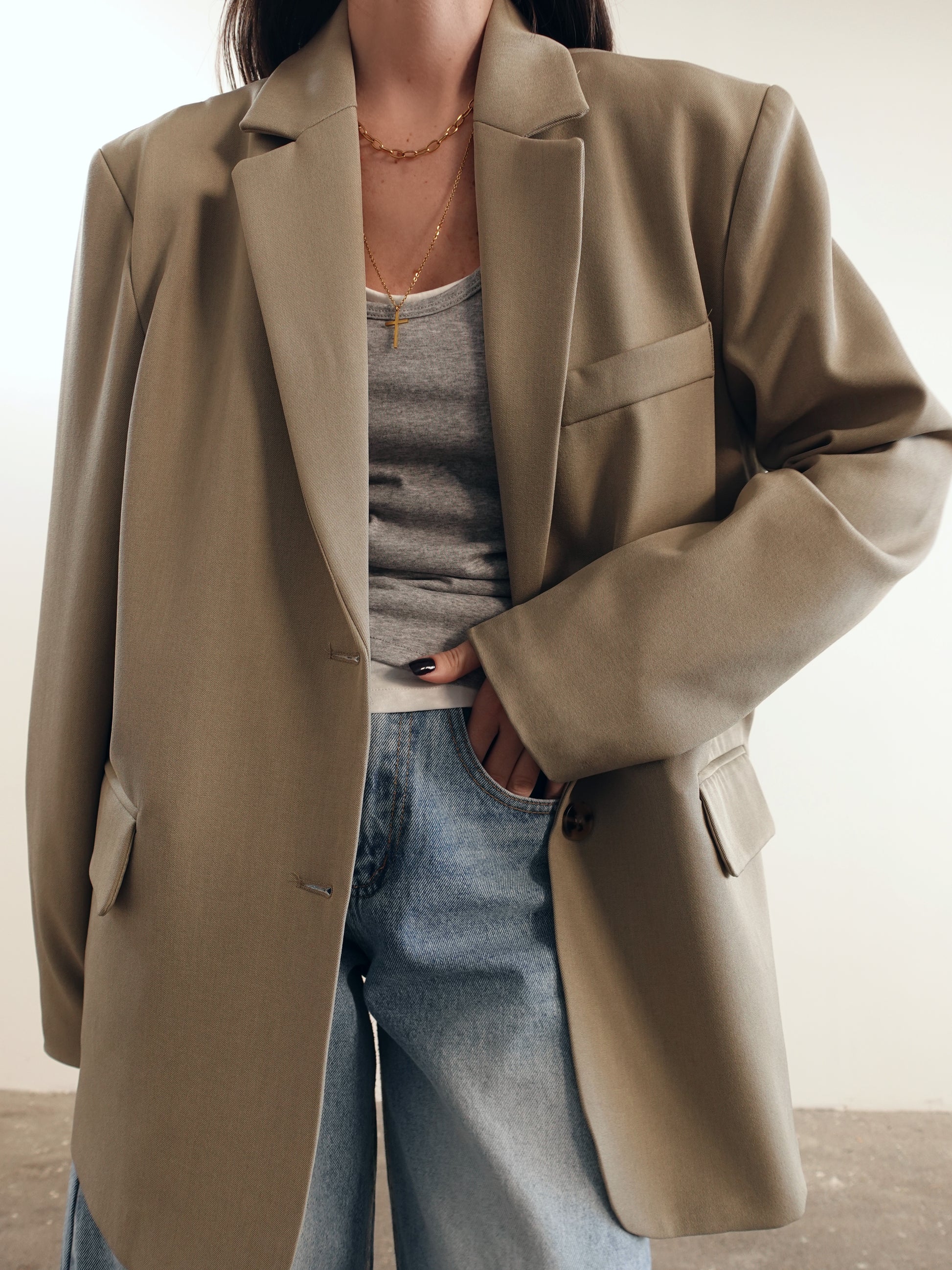 BLAZER OVER CON APERTURA SUL RETRO - VERDE SALVIA 24806