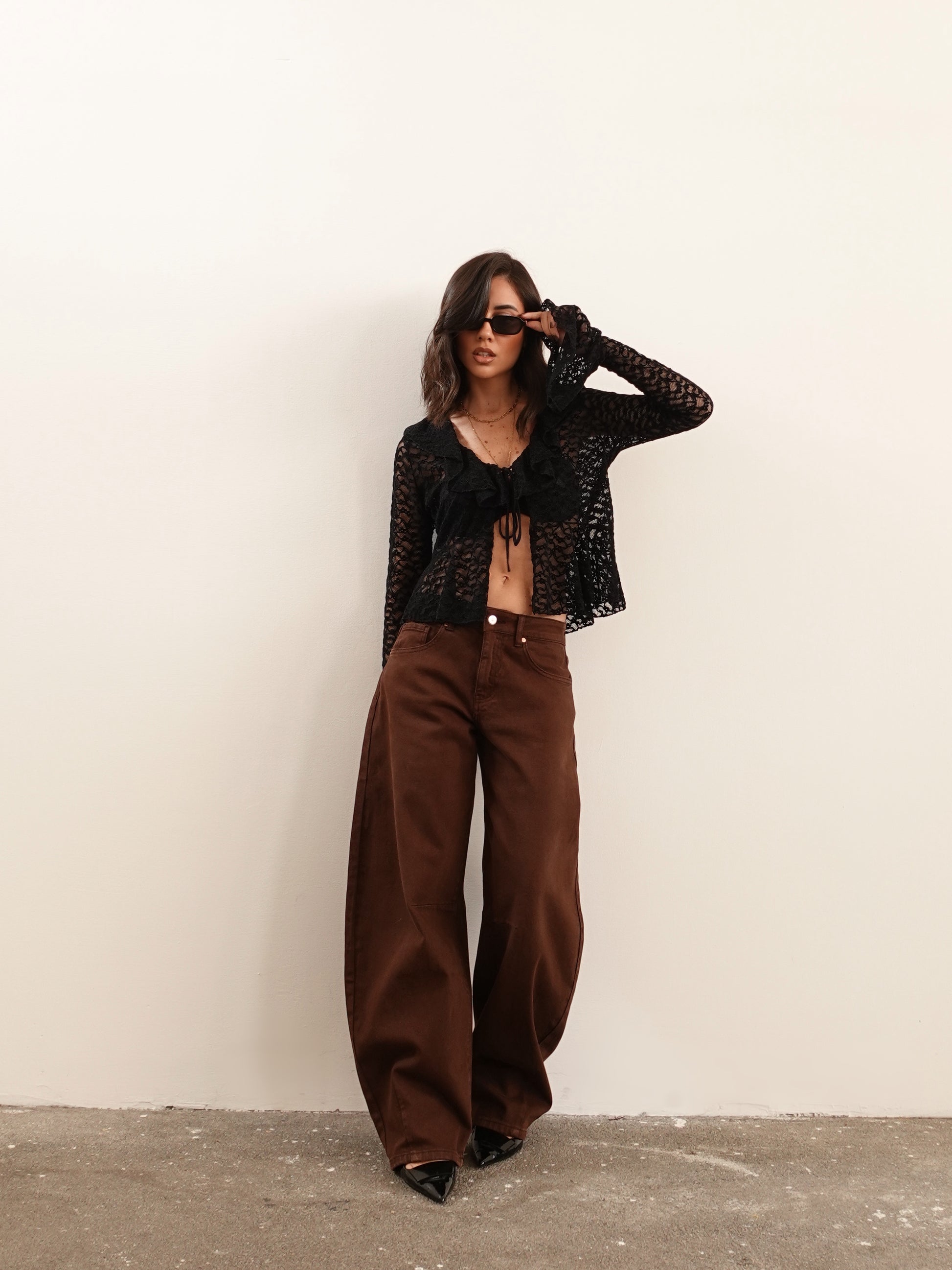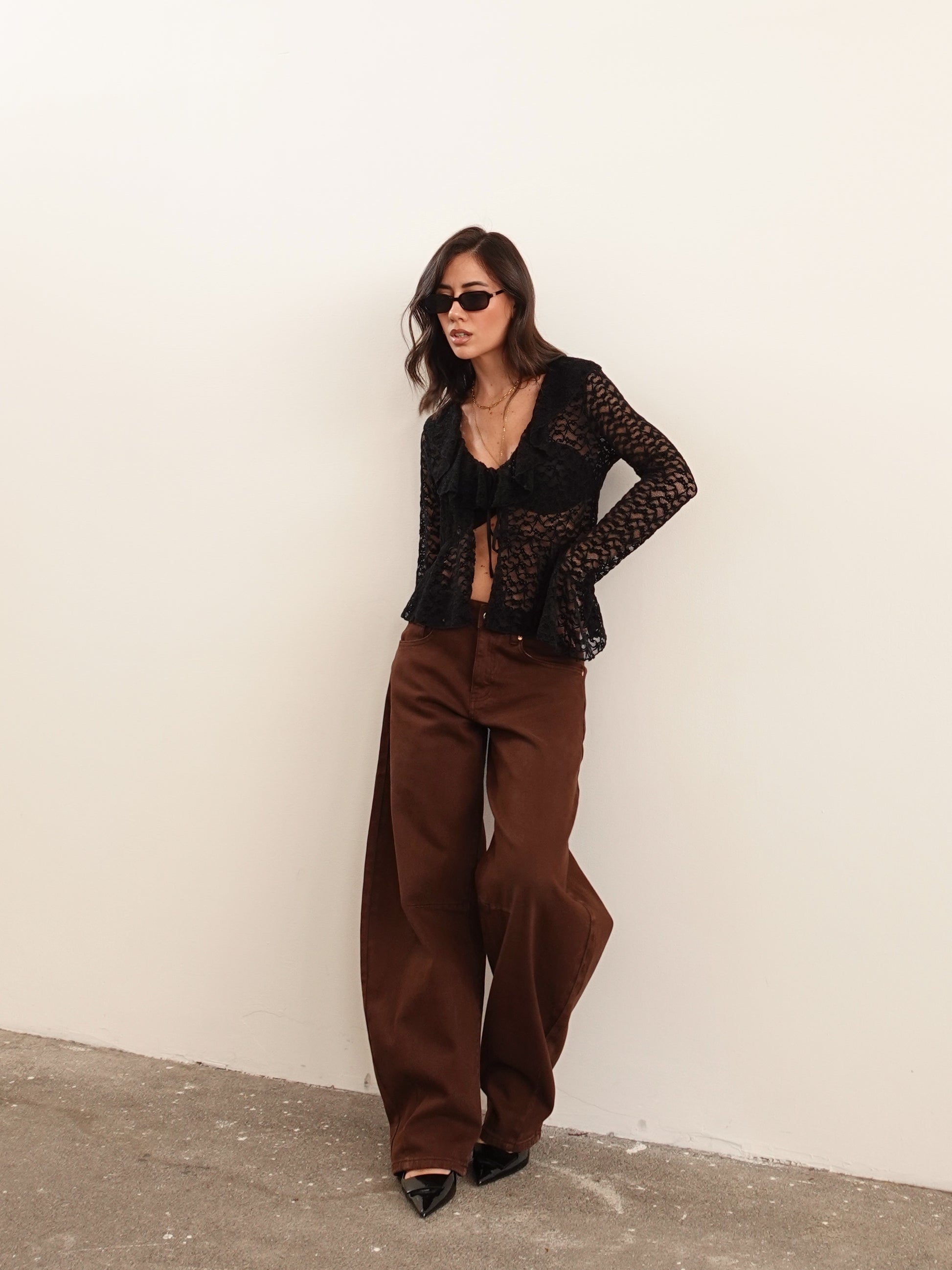 BLUSA IN PIZZO VELVET - NERO 133381