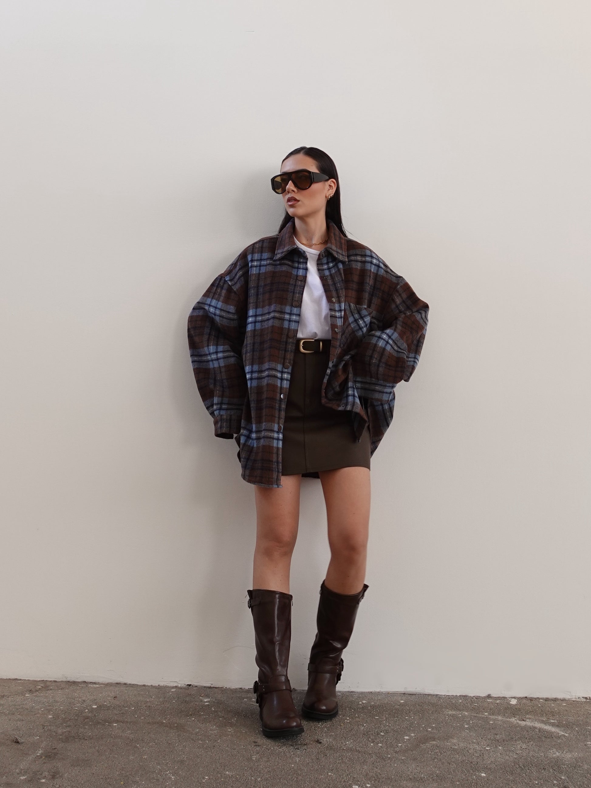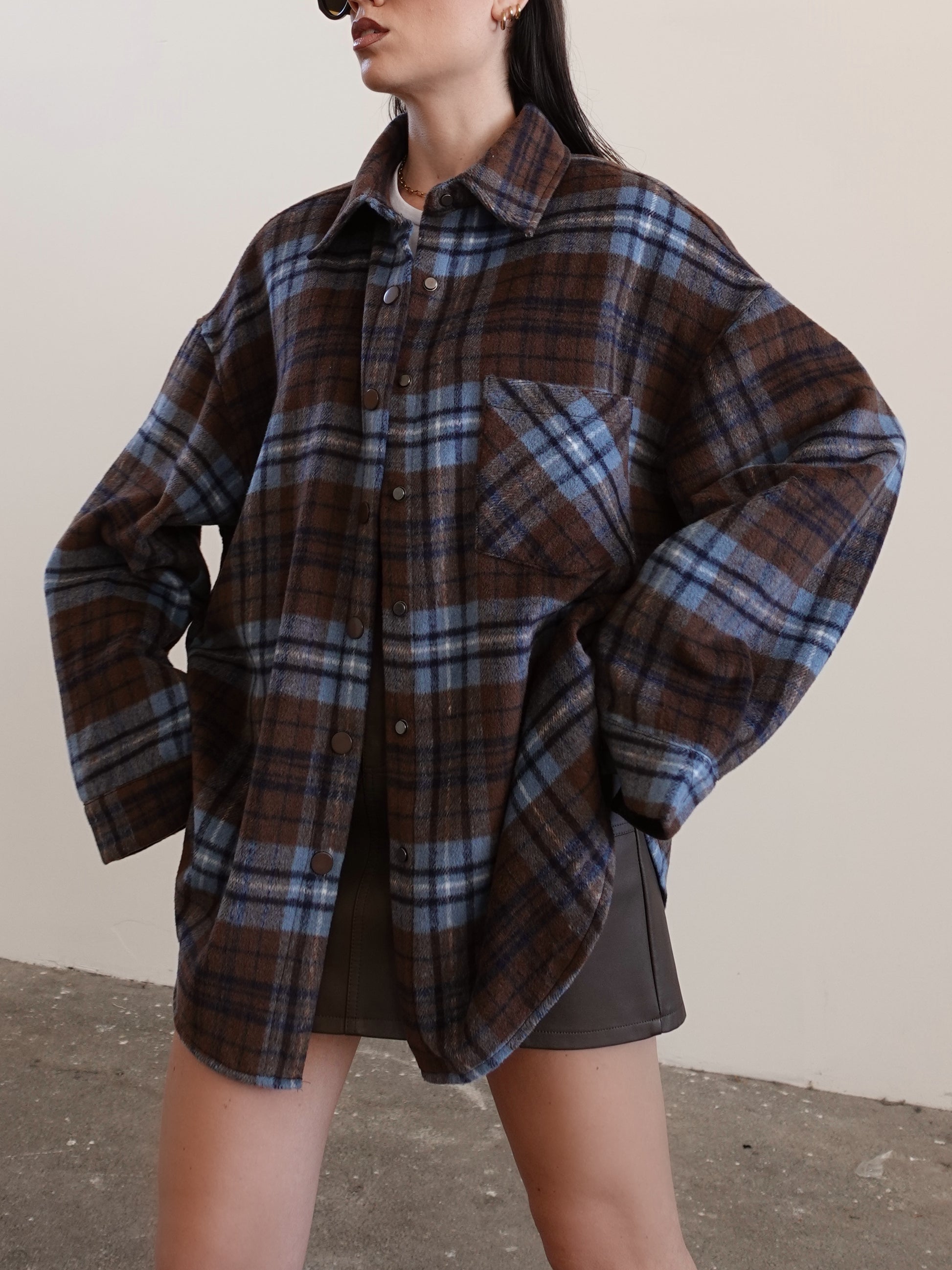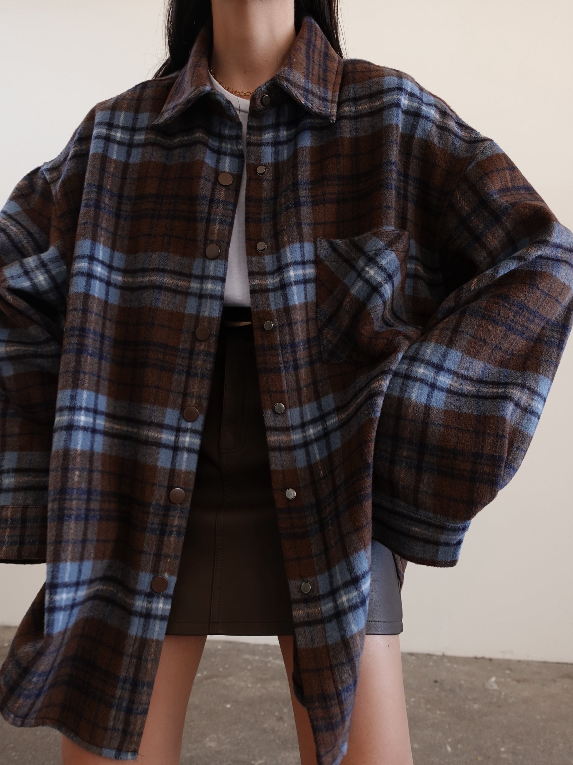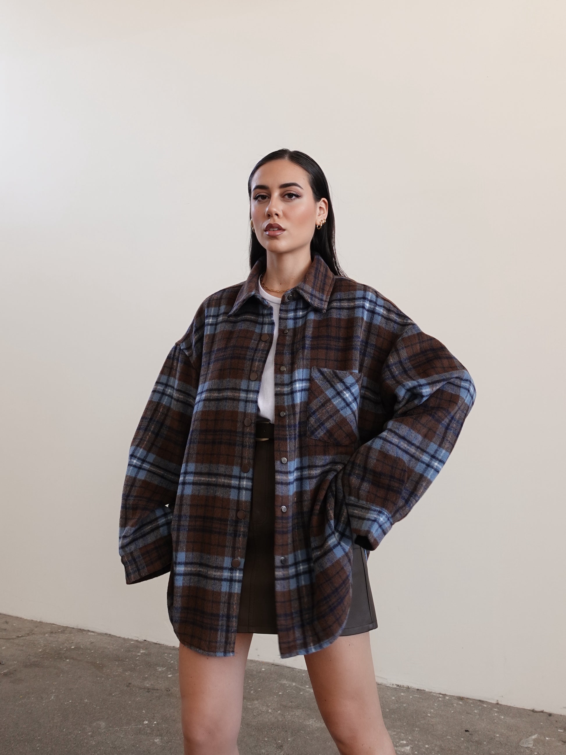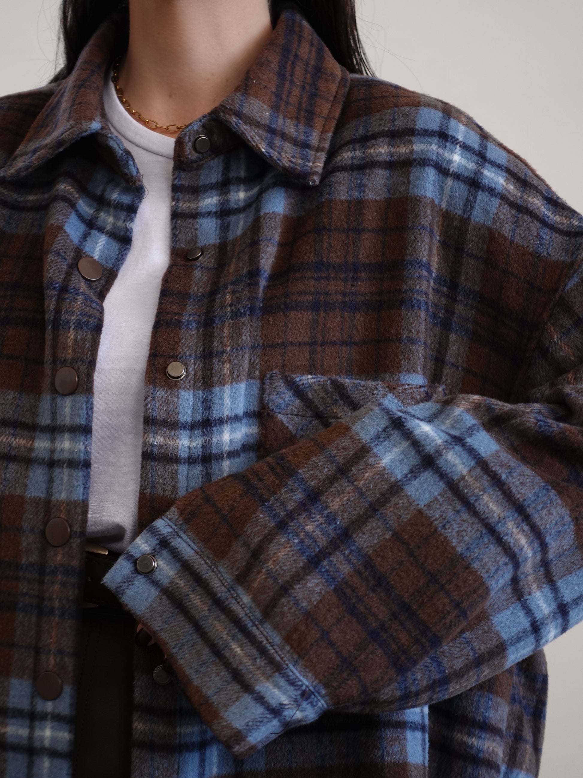 CAMICIONE IN LANA A QUADRI - MARRONE/CERULEO 5436