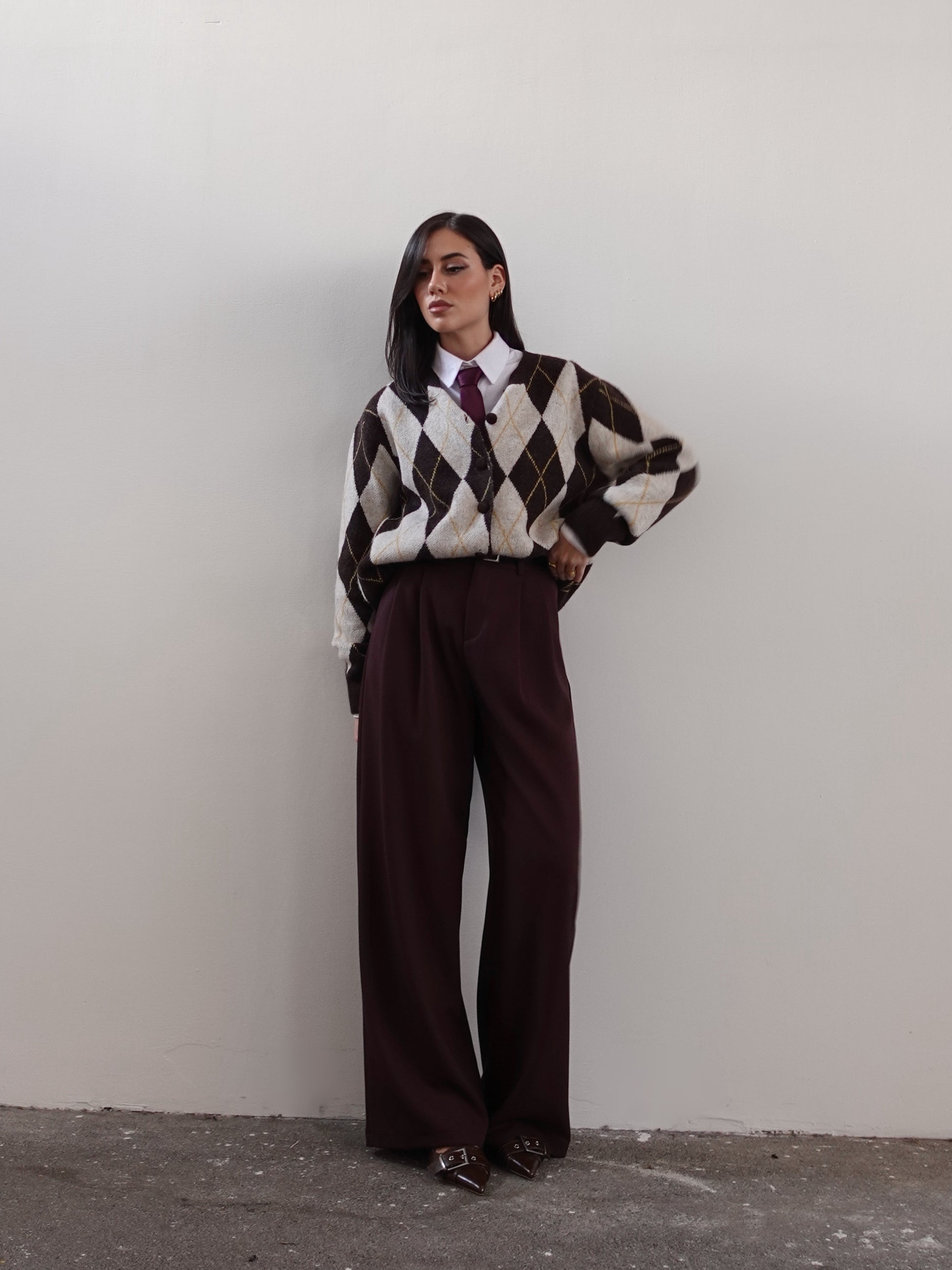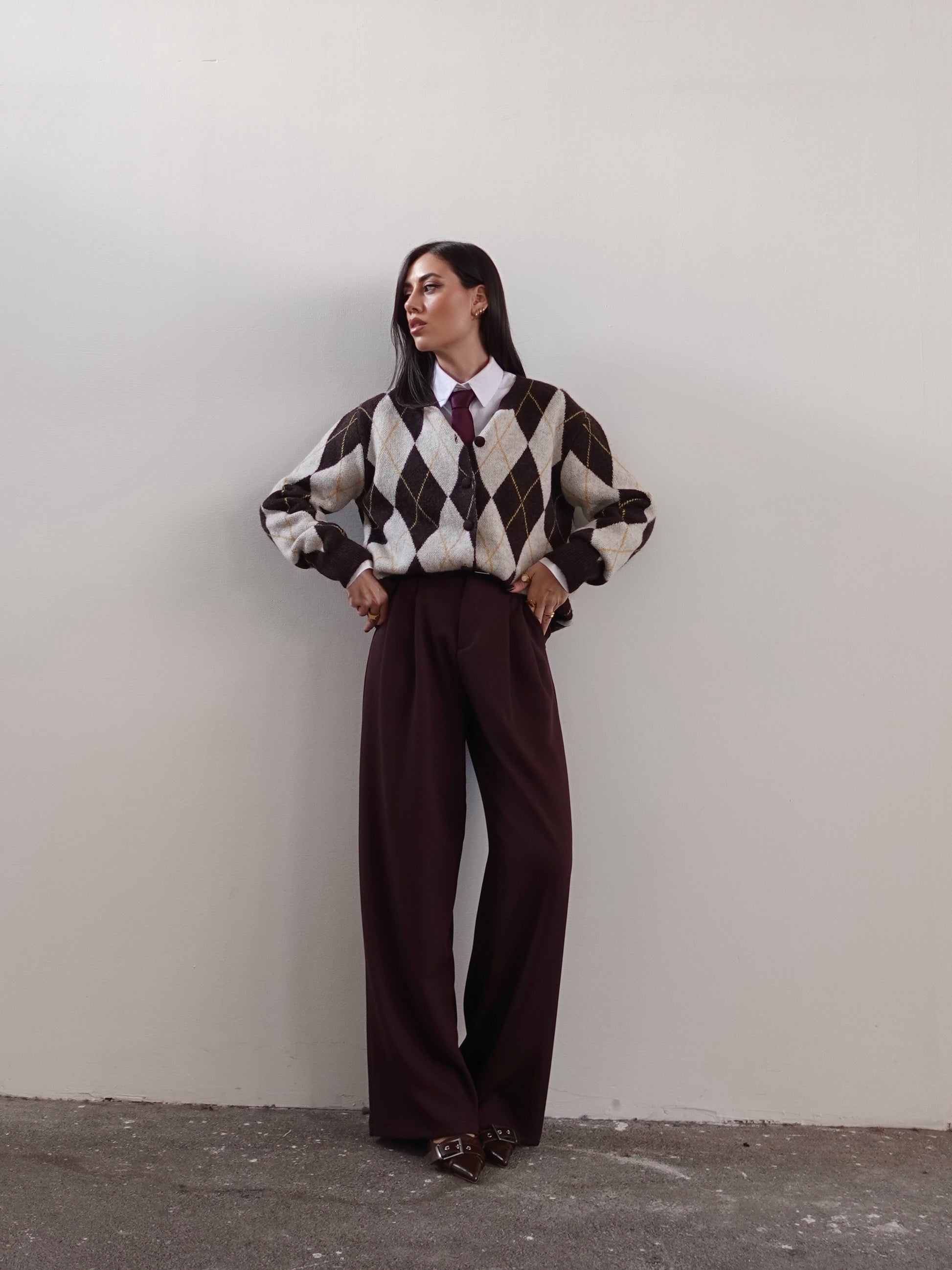 CARDIGAN IN LANA FANTASIA ROMBI - BEIGE/MARRONE 8280