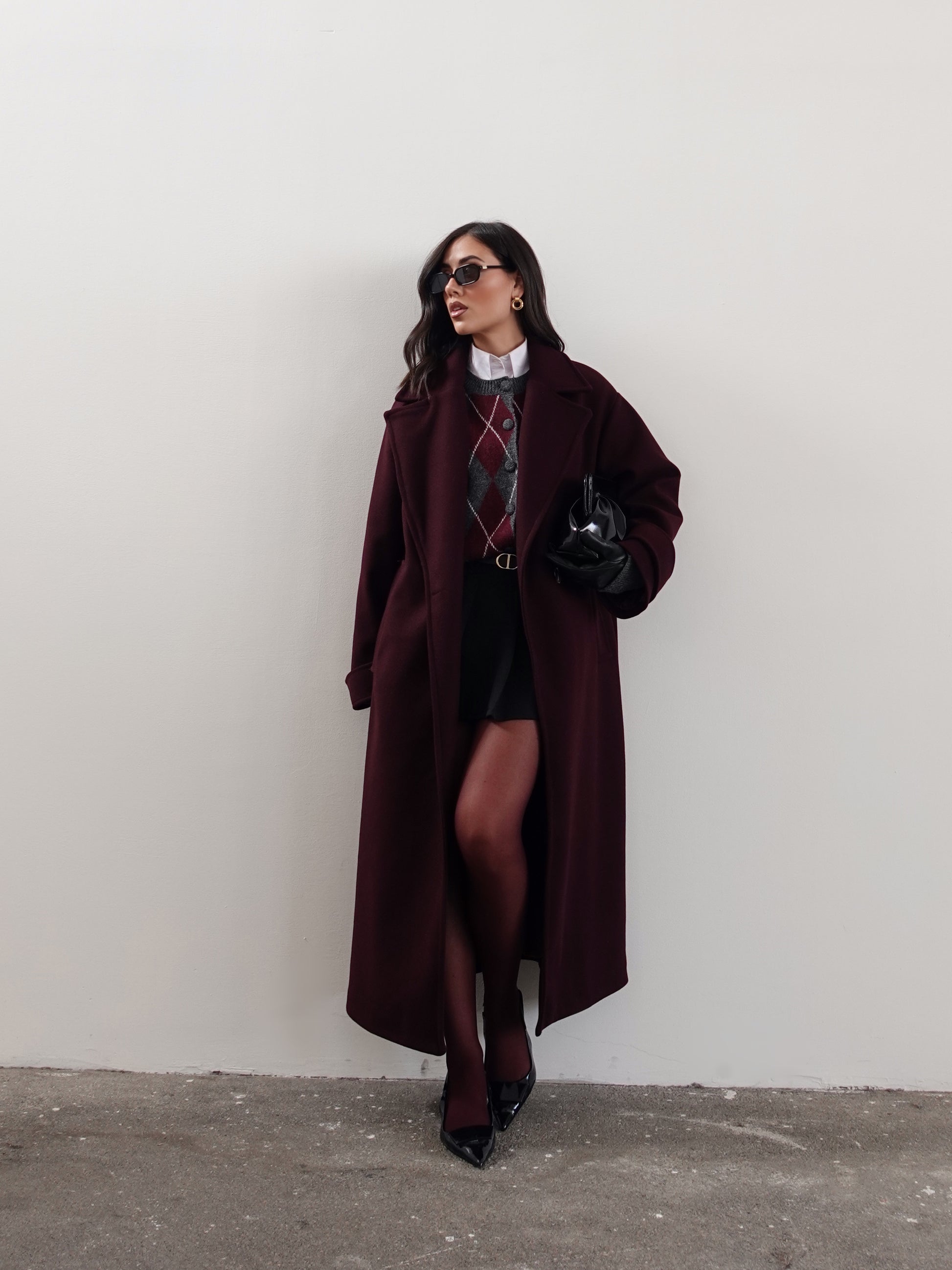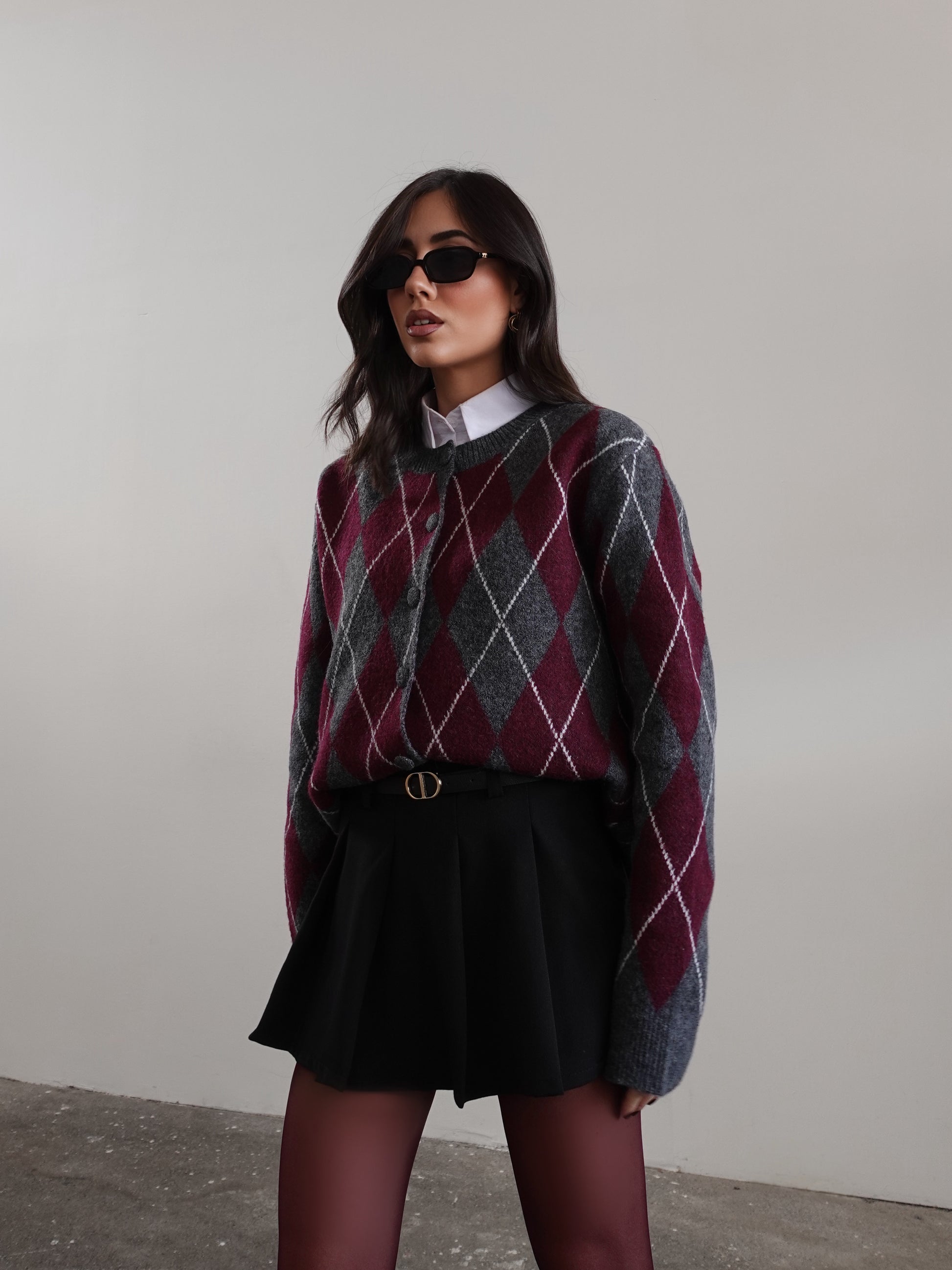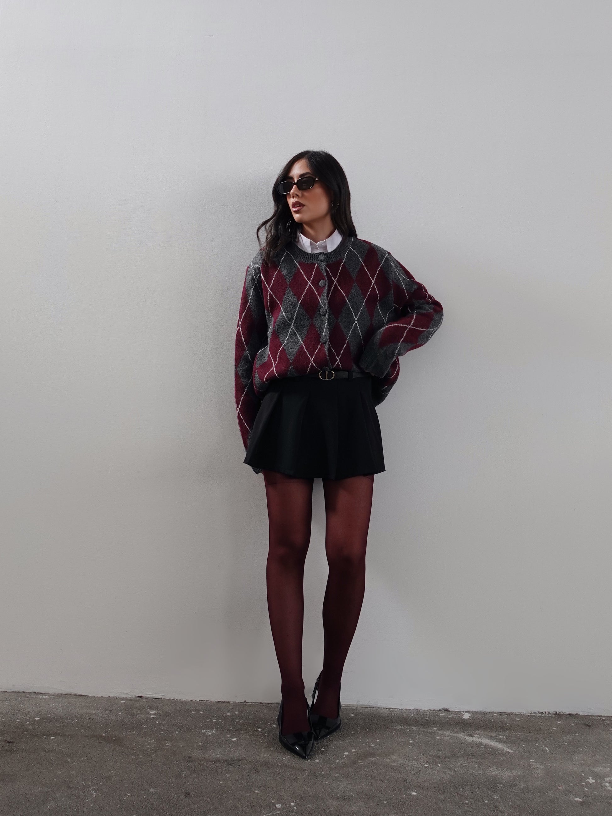 CARDIGAN IN LANA FANTASIA ROMBI - GRIGIO/WINE 8280