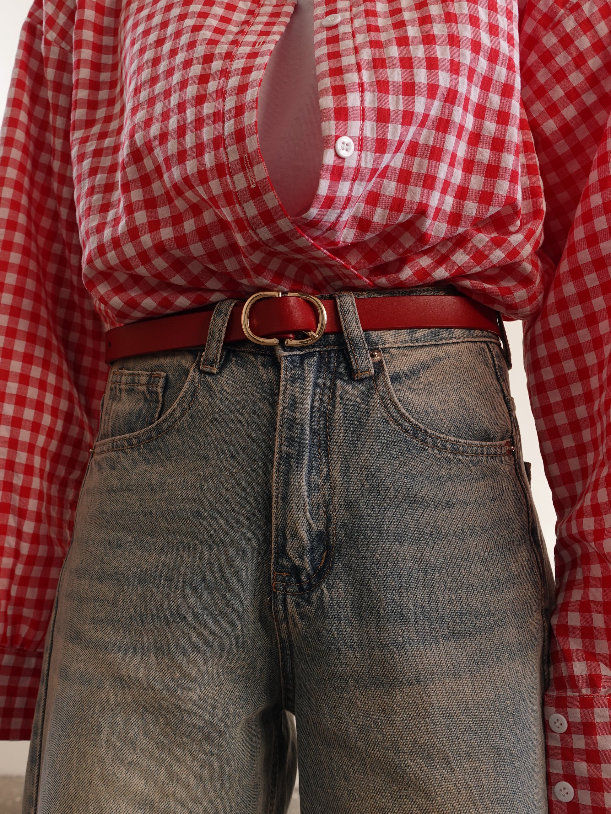CINTURA IN VERA PELLE CON FIBBIA IN ORO - ROSSO