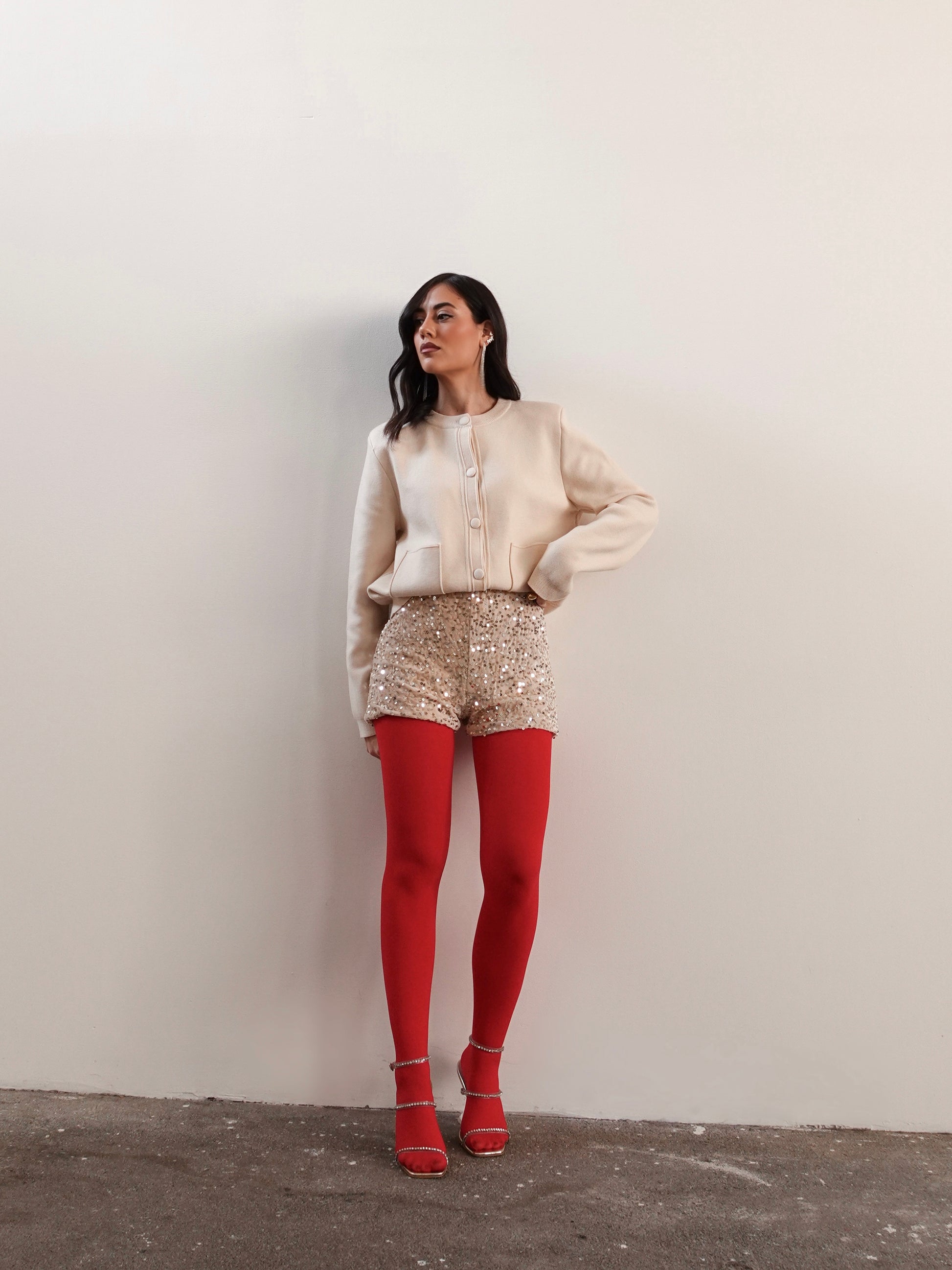 CULOTTE IN CINIGLIA CON PAILLETTES - CREMA 27710