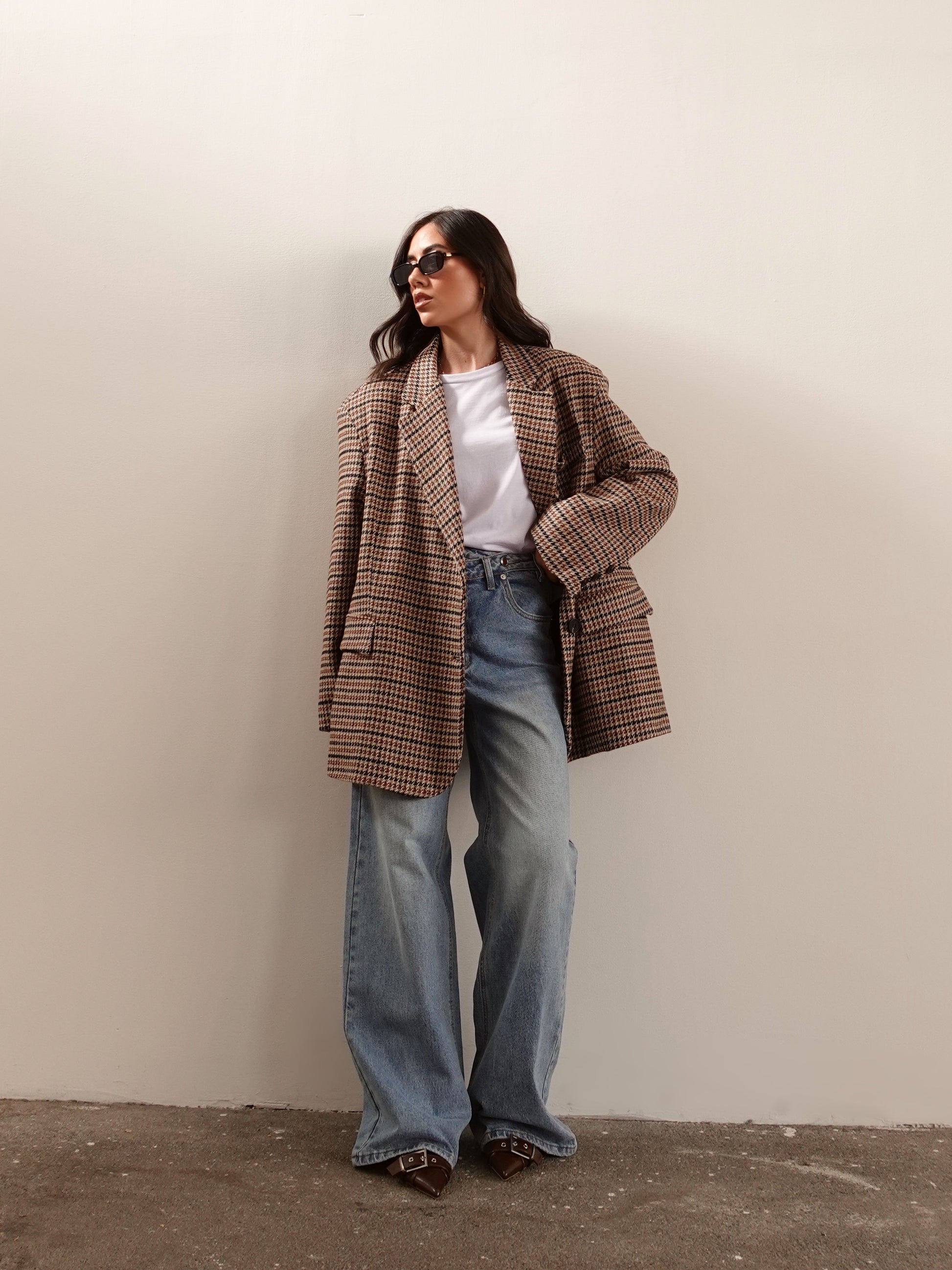 GIACCA/CAPPOTTO PIED DE POULE - BEIGE/COCCIO GC-02