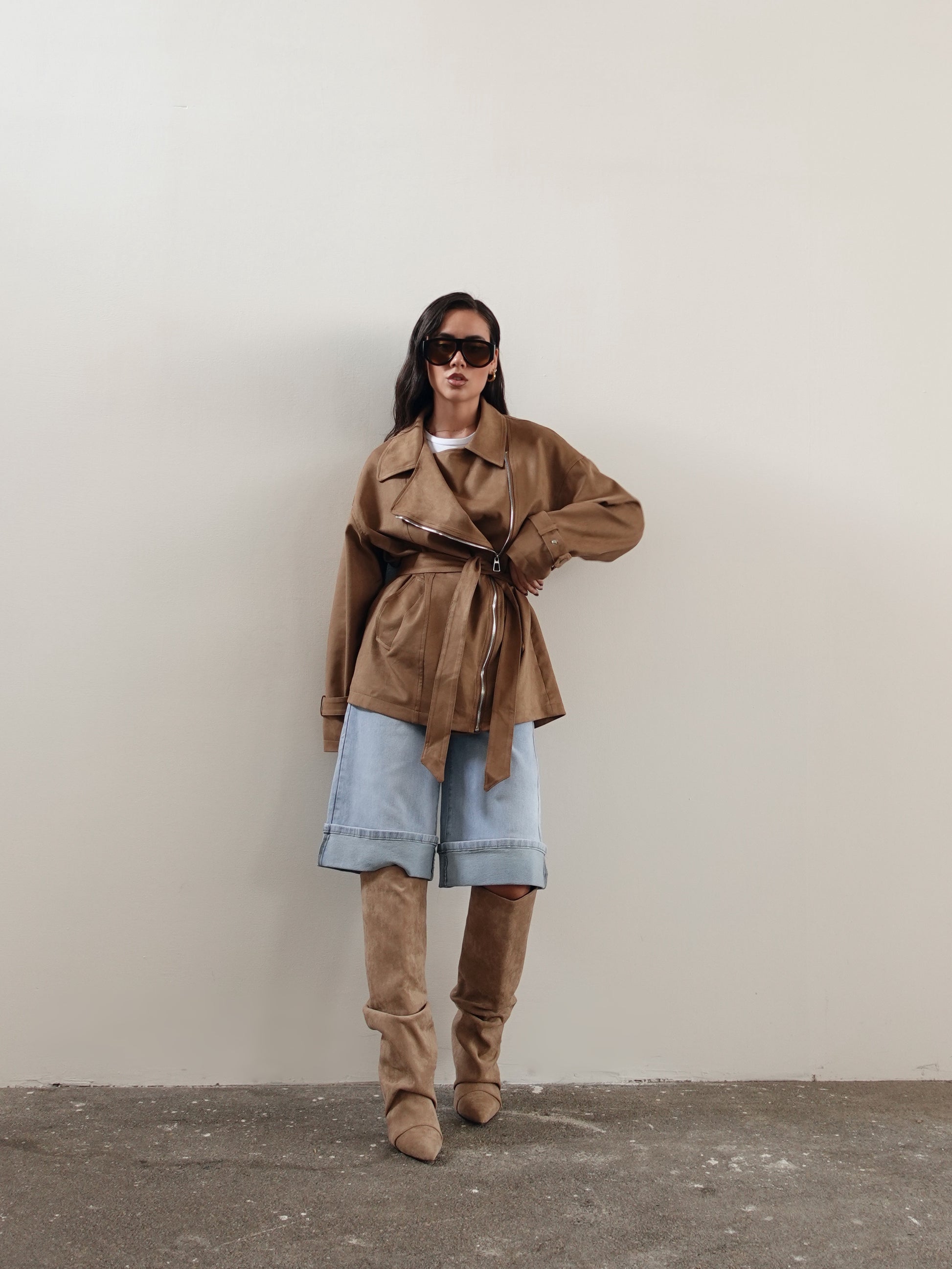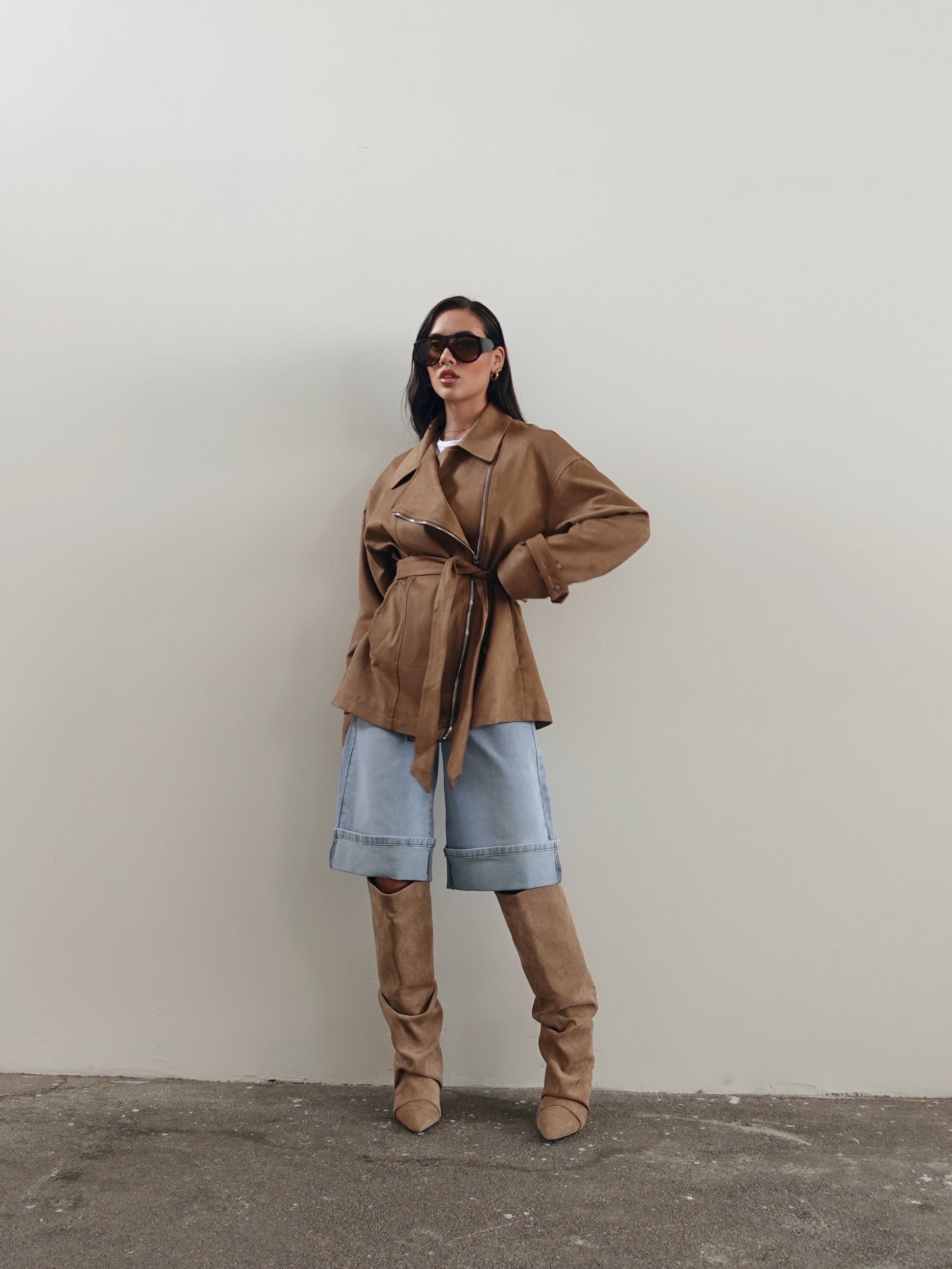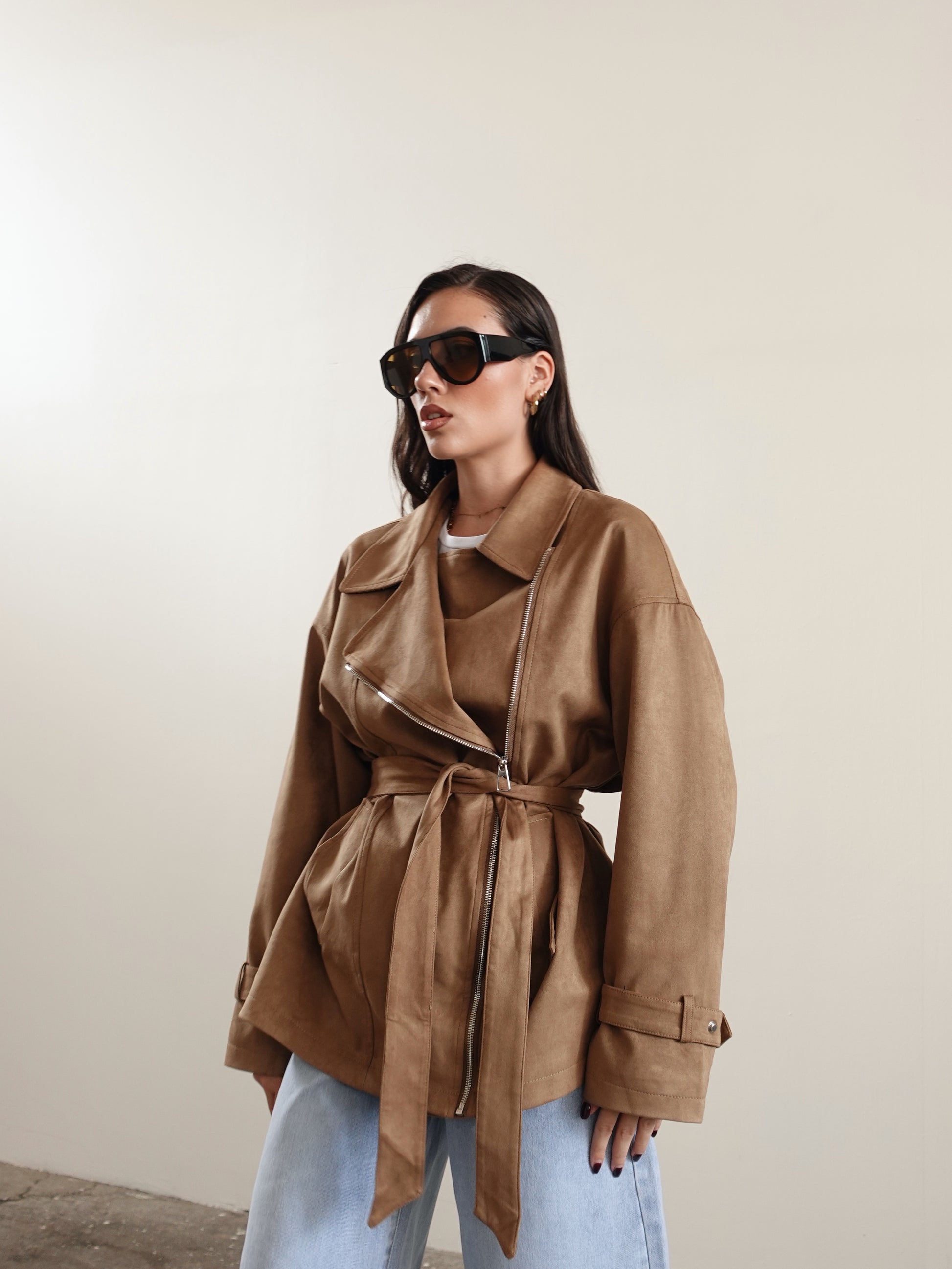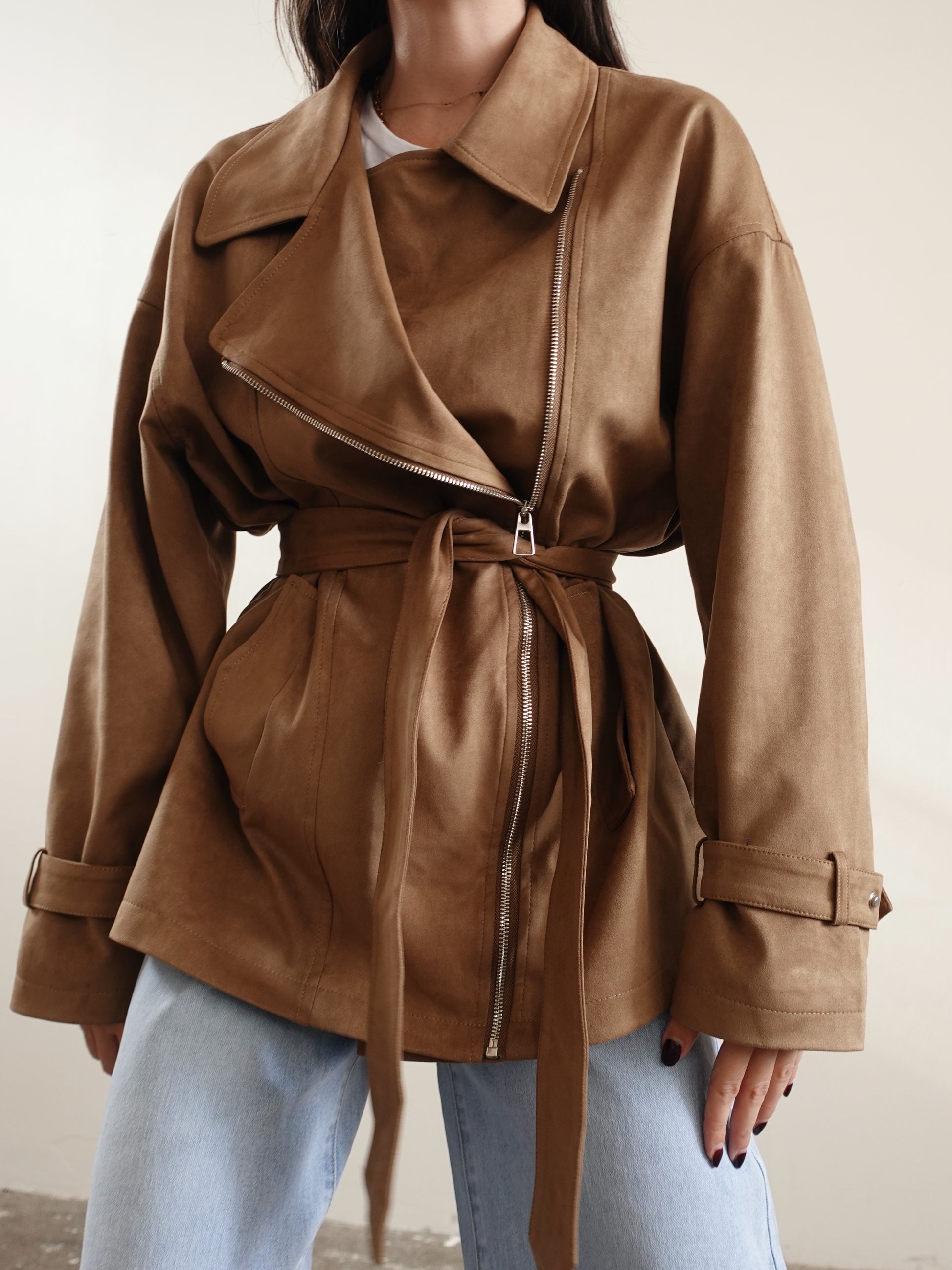 GIACCA SCAMOSCIATA CON CINTURA - CAMEL 160391