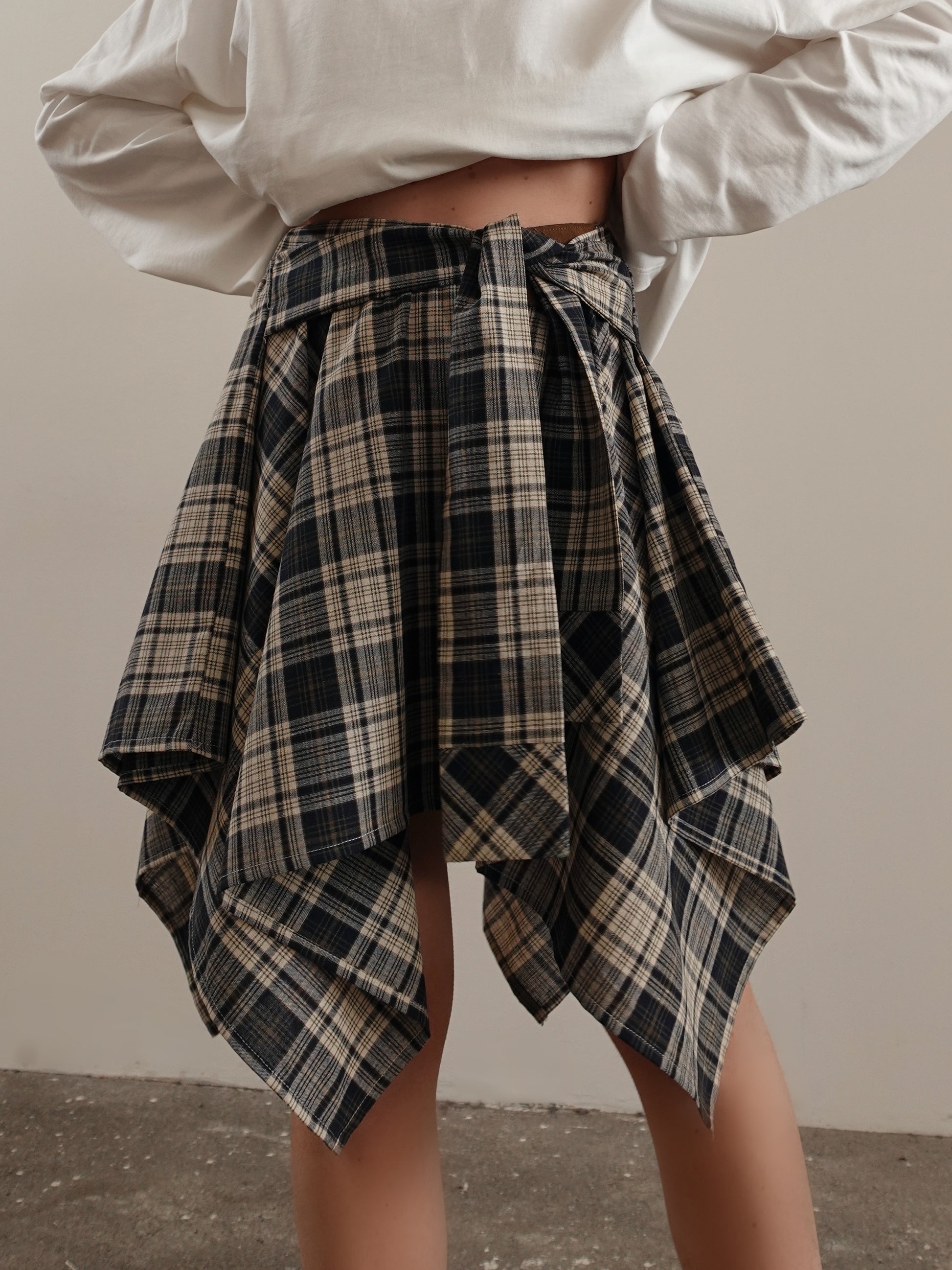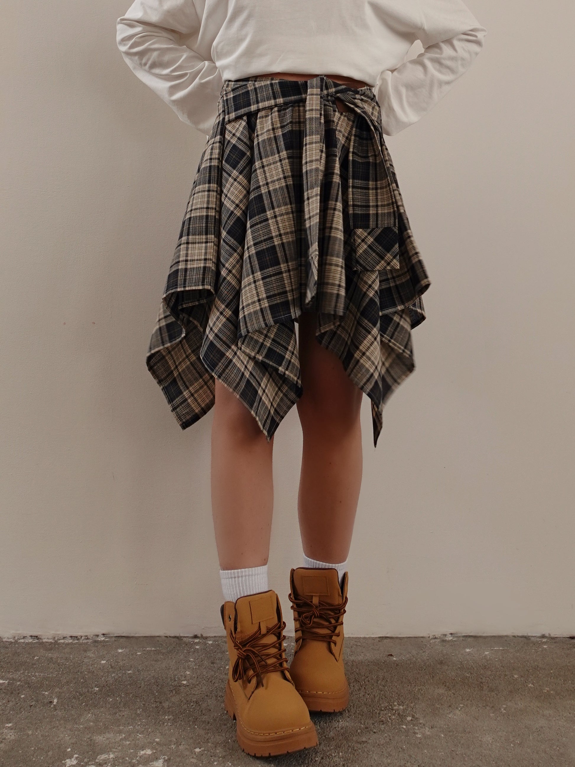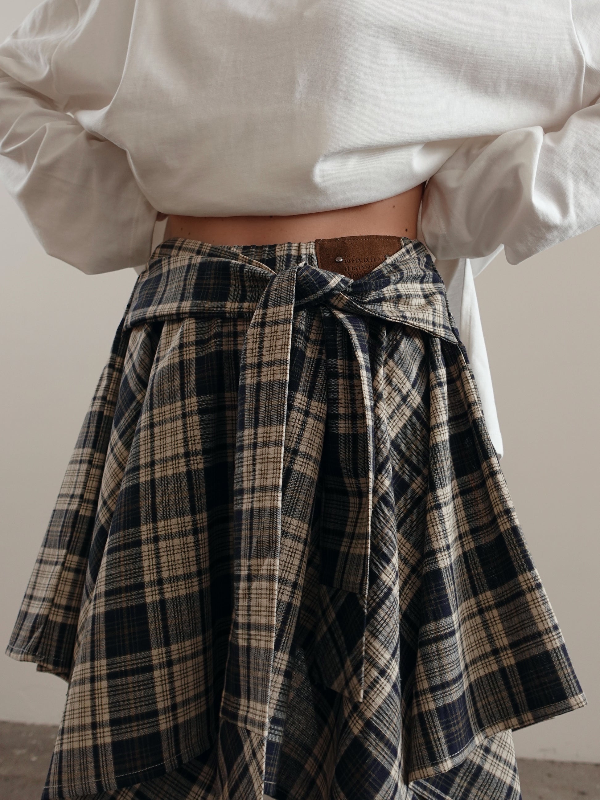 GONNA EFFETTO CAMICIA A QUADRI - BEIGE/BLU 5673