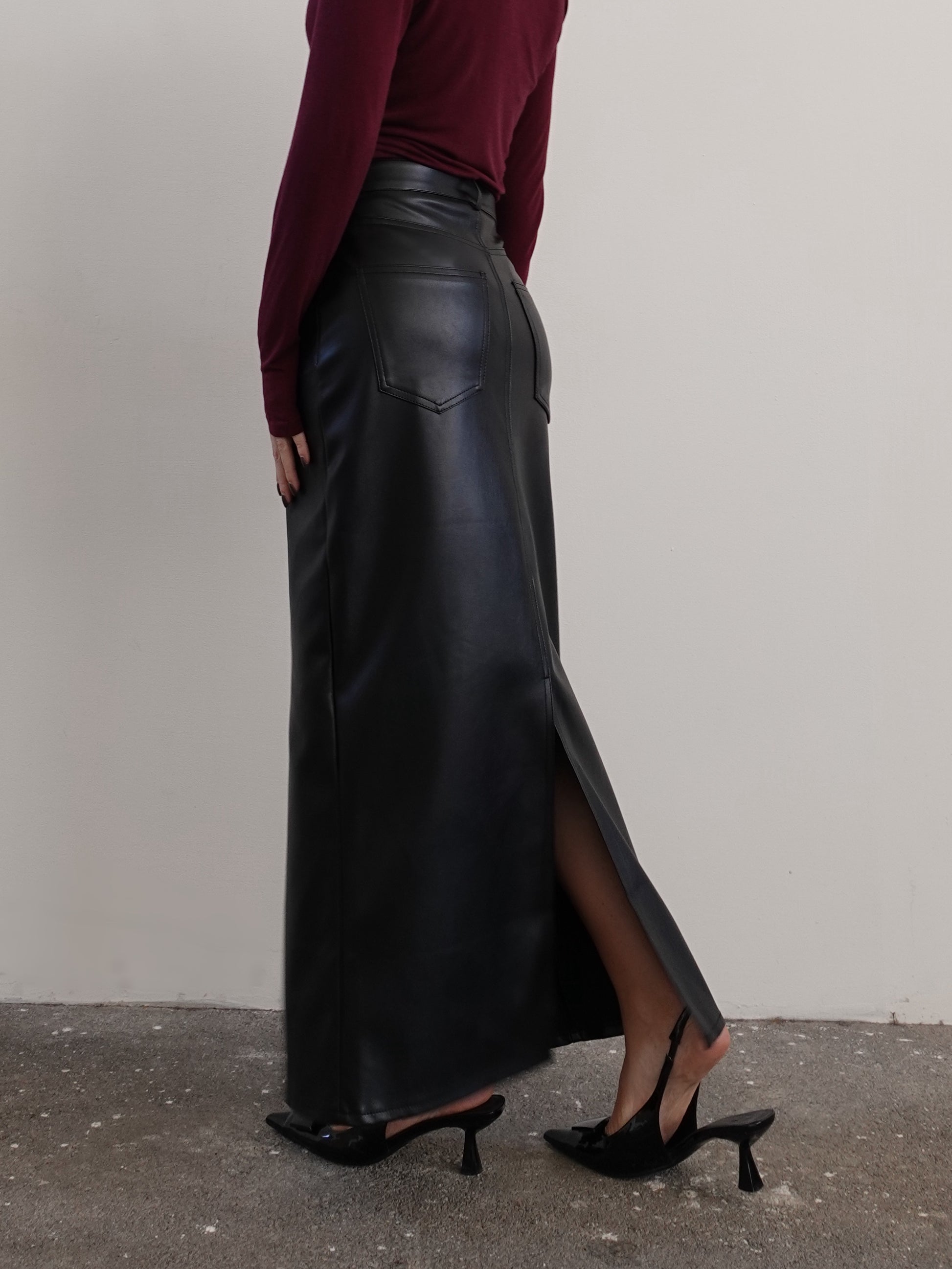 GONNA LONGUETTE IN ECOPELLE CON SPACCO - NERO 9358
