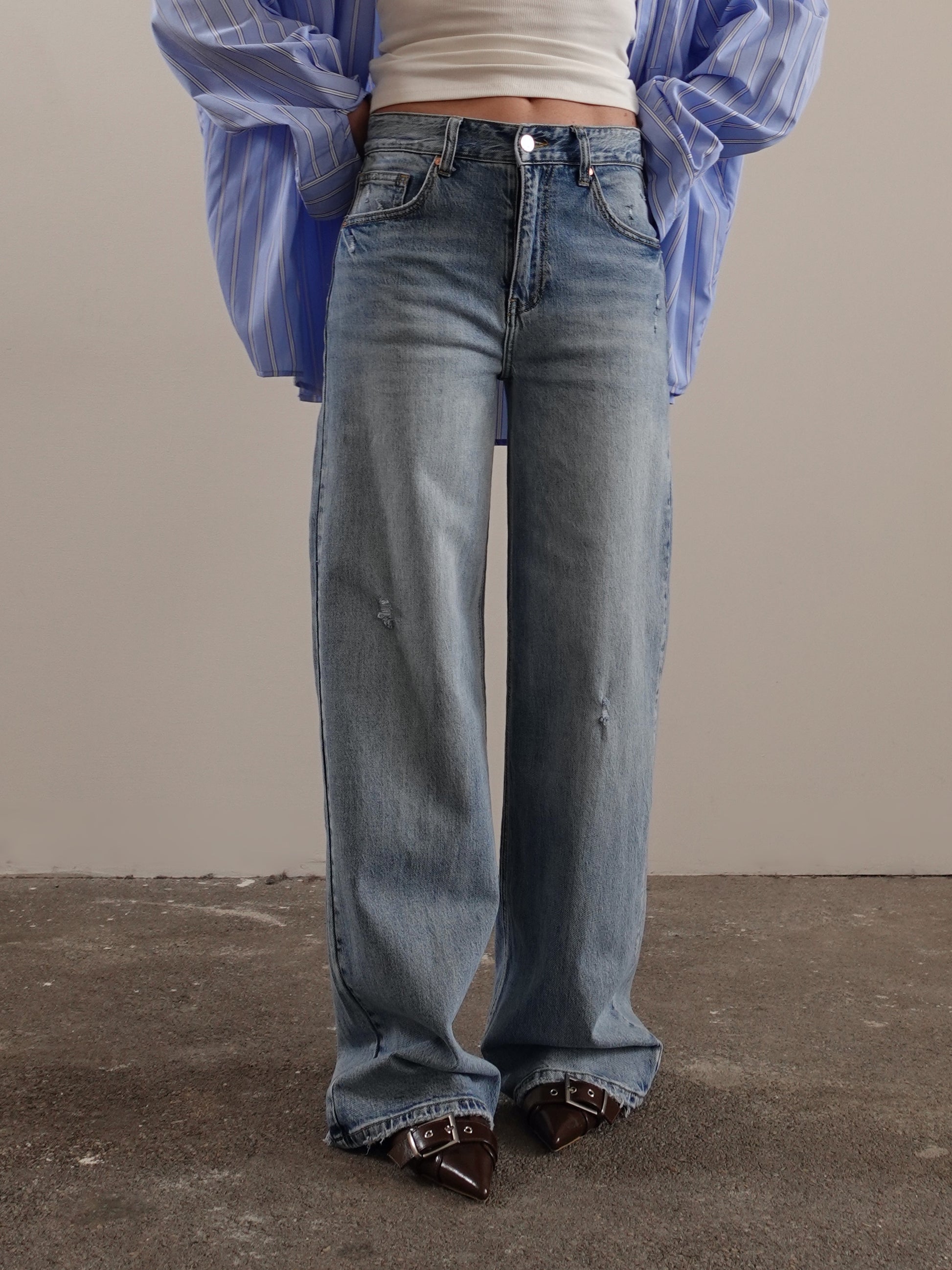 JEANS WIDE LEG CON ABRASIONI - DENIM CHIARO 800017