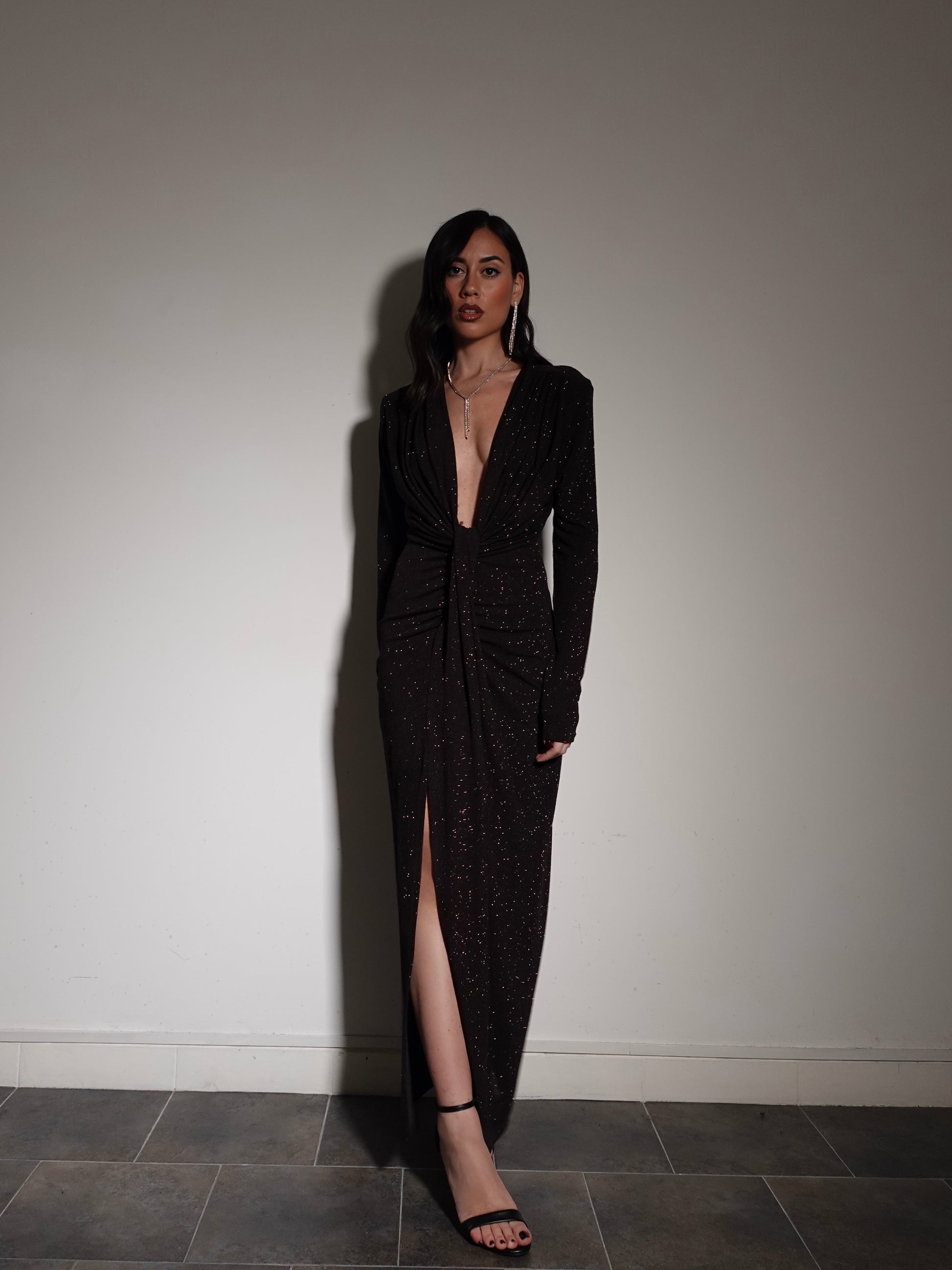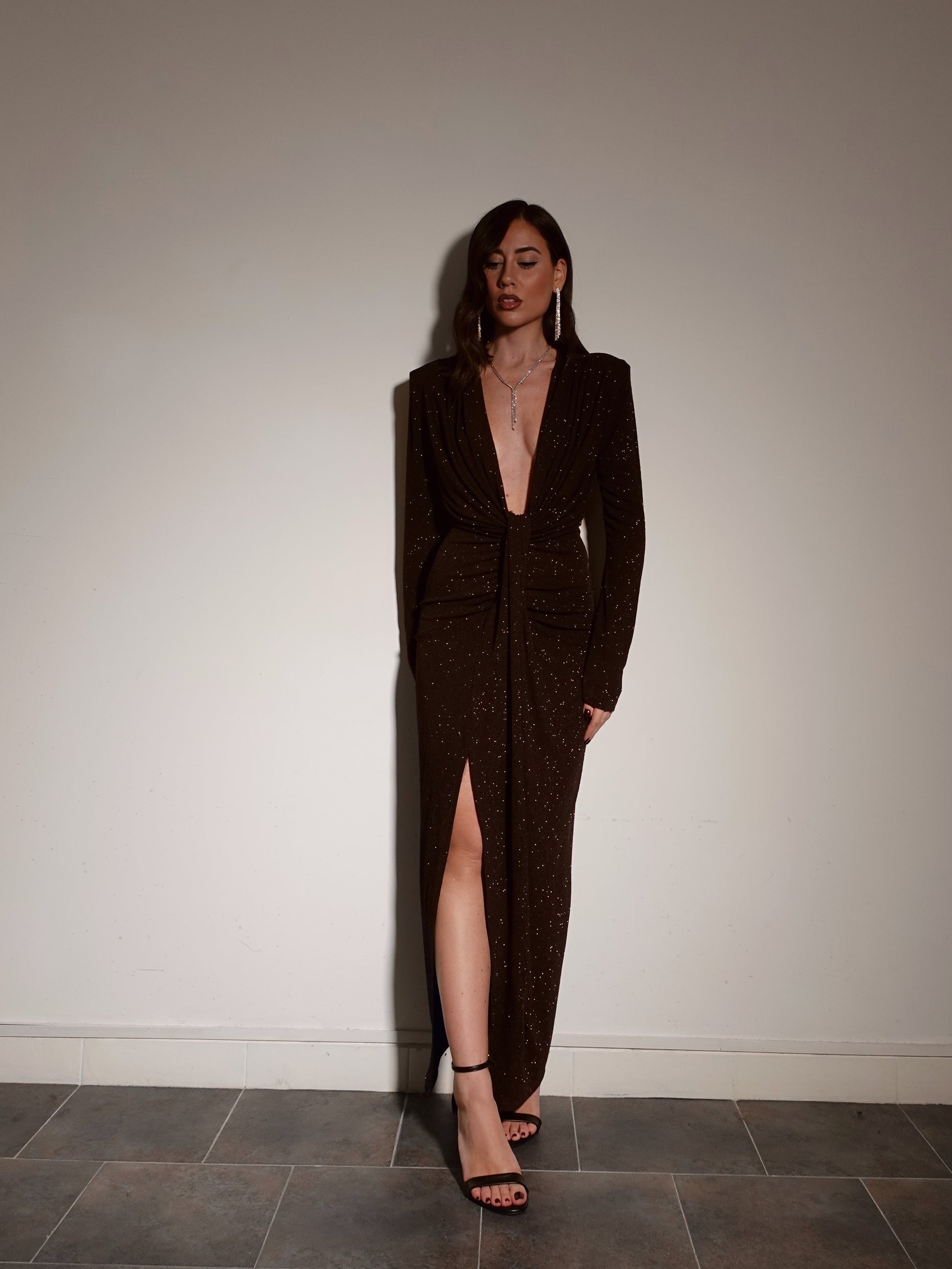 LONG DRESS GLITTER STARDAST - MARRONE 121373