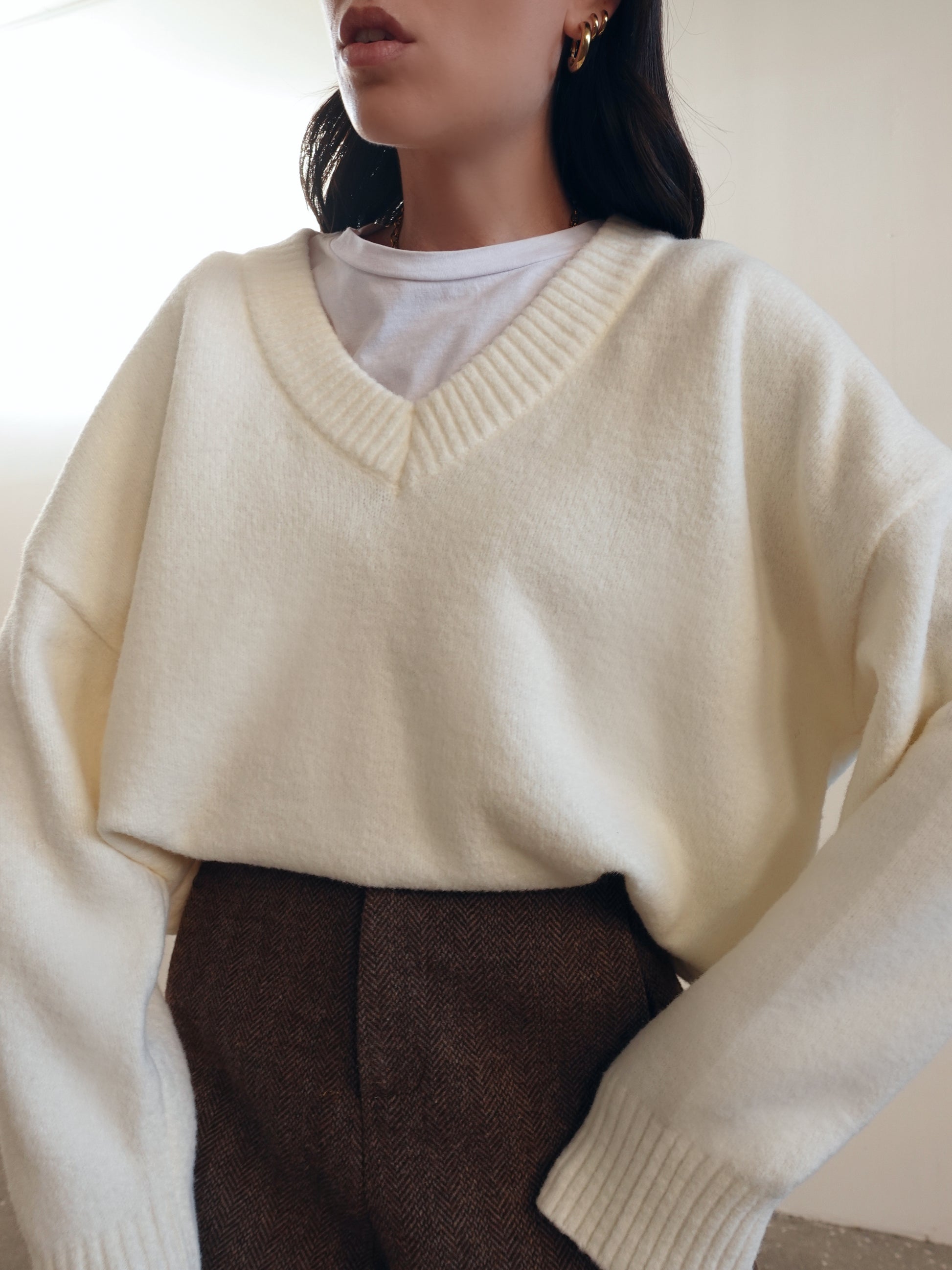 MAGLIONCINO IN VISCOSA & LANA SCOLLO V (+ COLORI) 63784