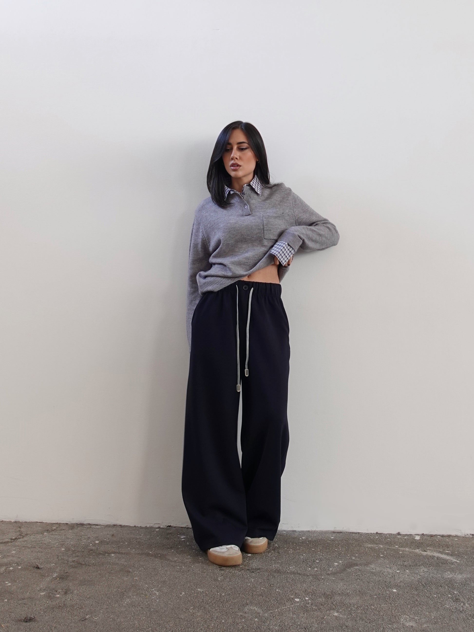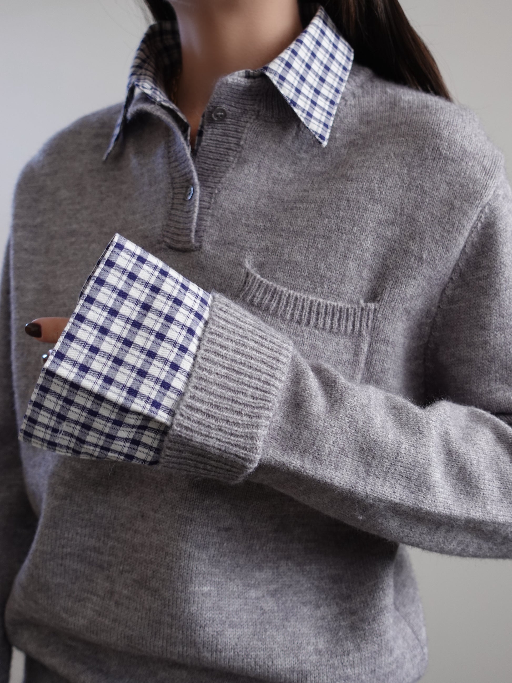 MAGLIONE CON COLLETTO E POLSI A QUADRI - GRIGIO 1241