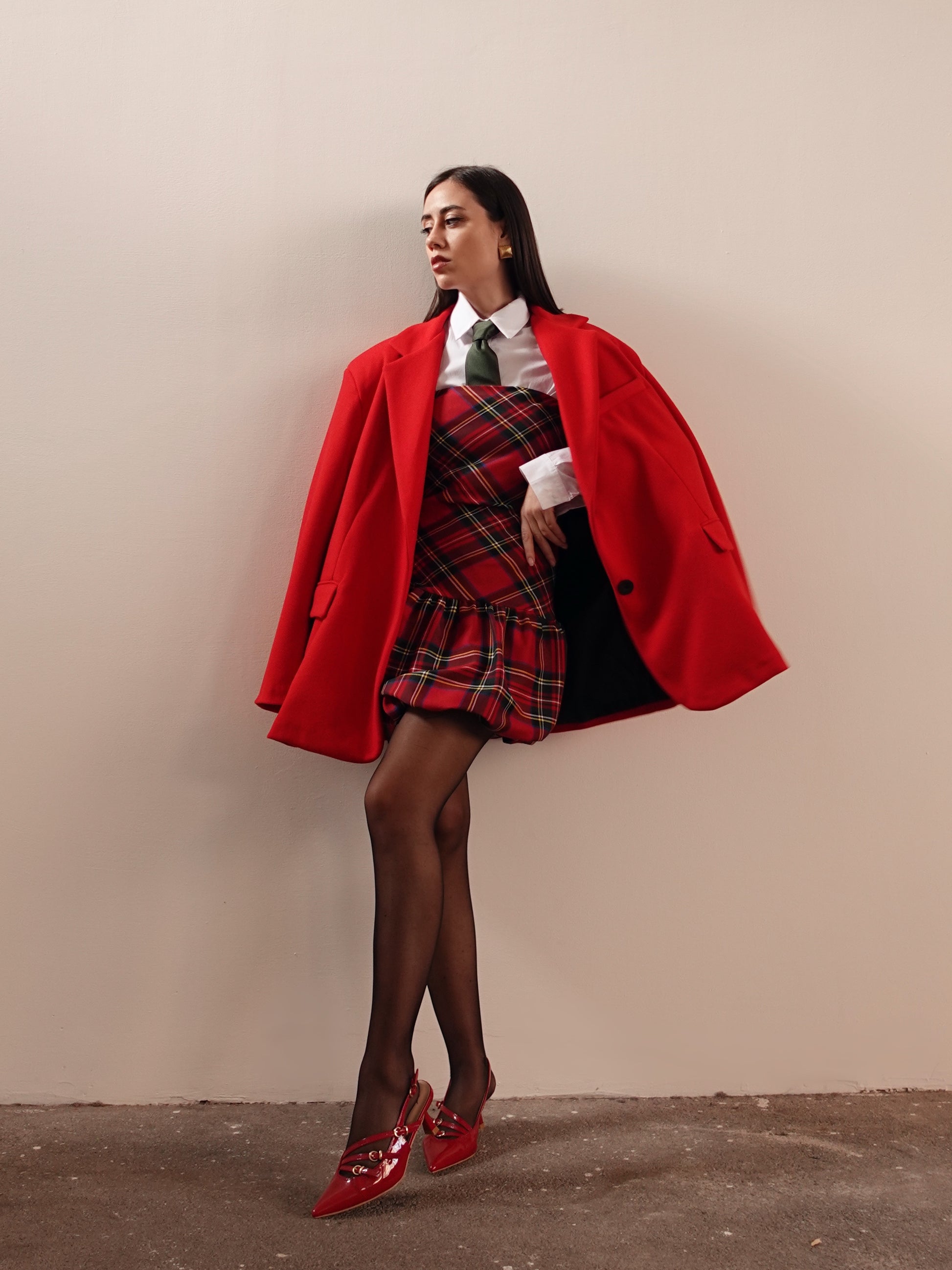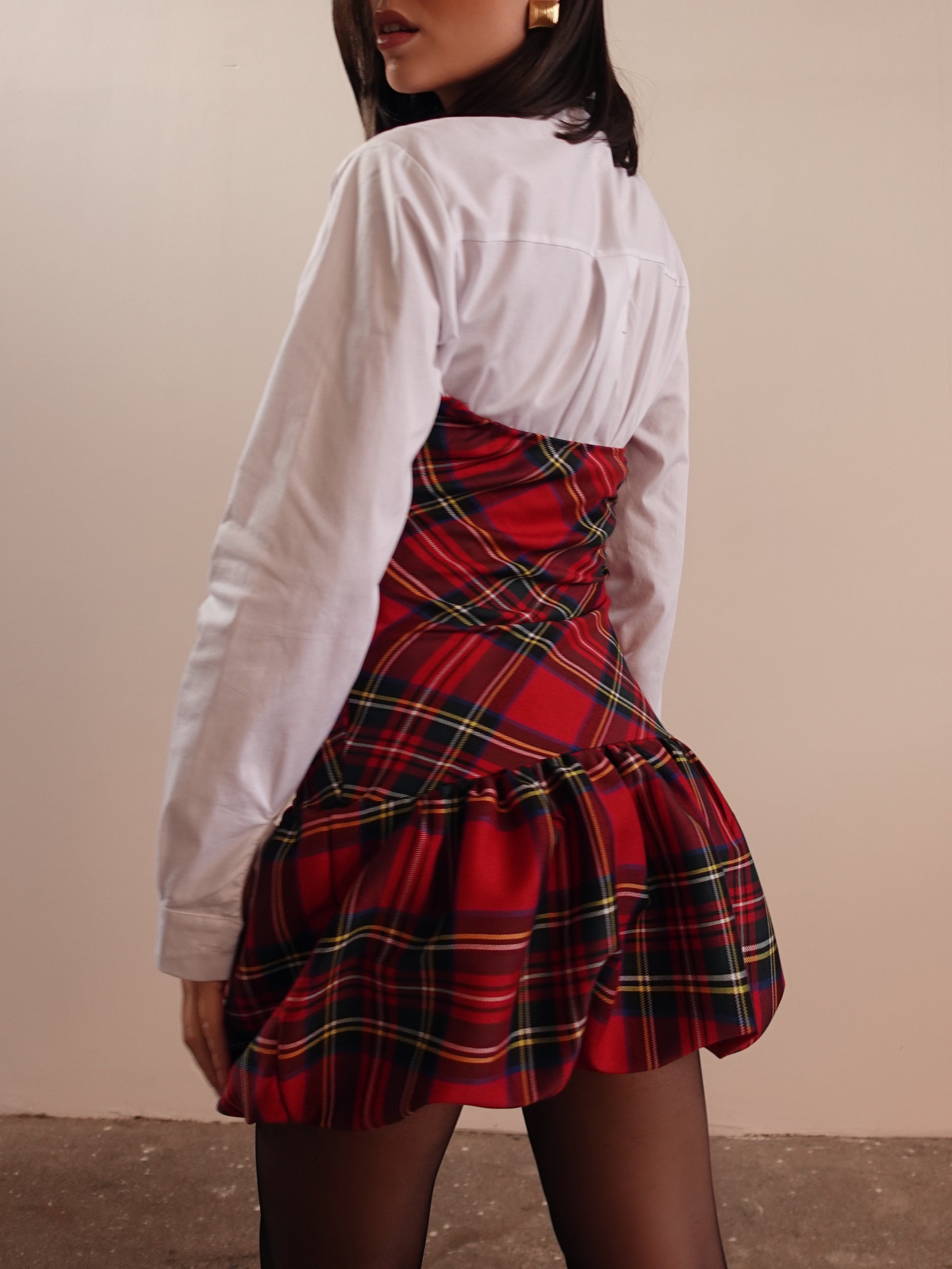 MINI DRESS TARTAN CON GONNA A PALLONCINO - ROSSO/VERDE 96409