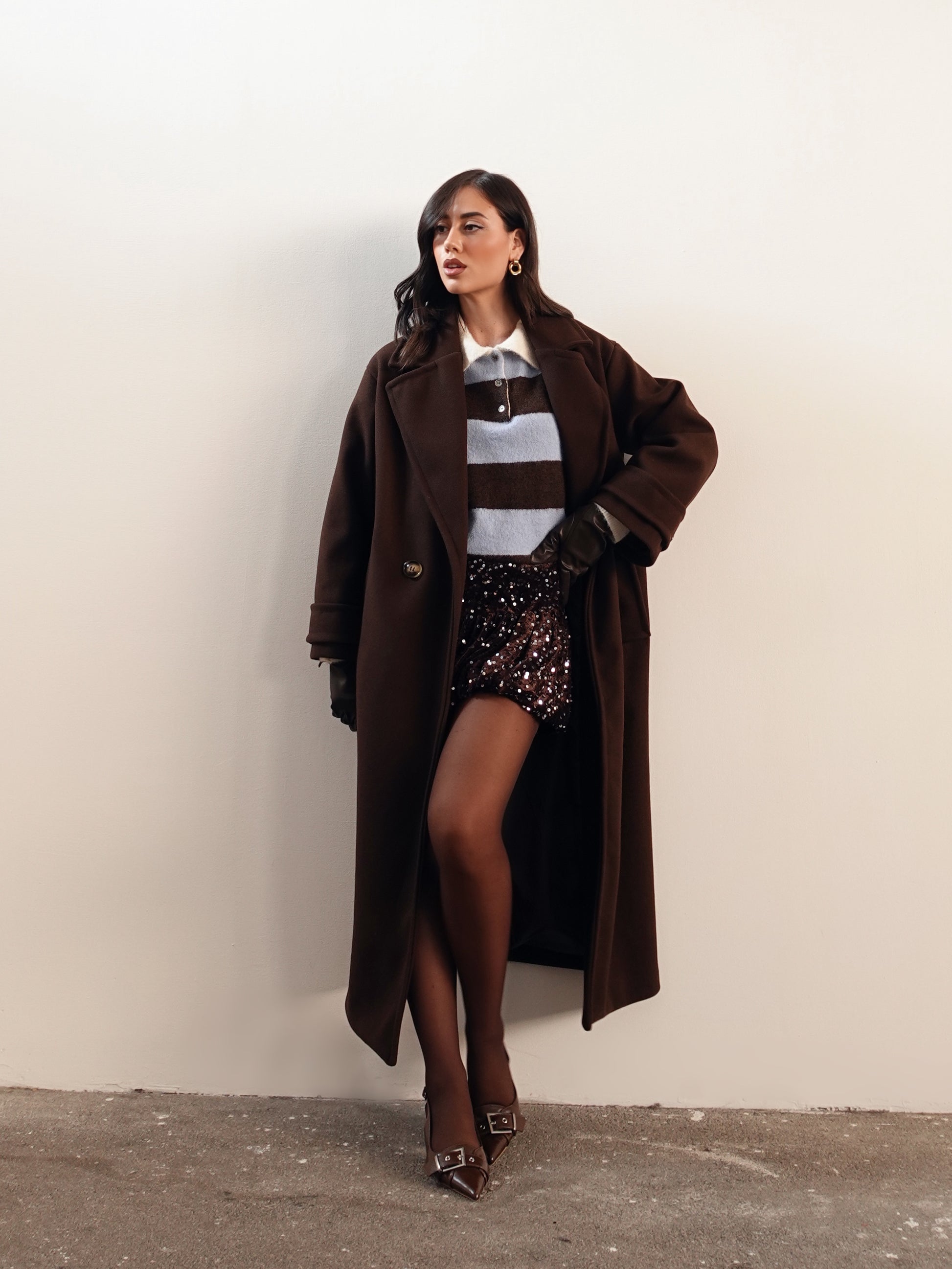 MINIGONNA VELVET CON PAILLETTES - CIOCCOLATO 26298