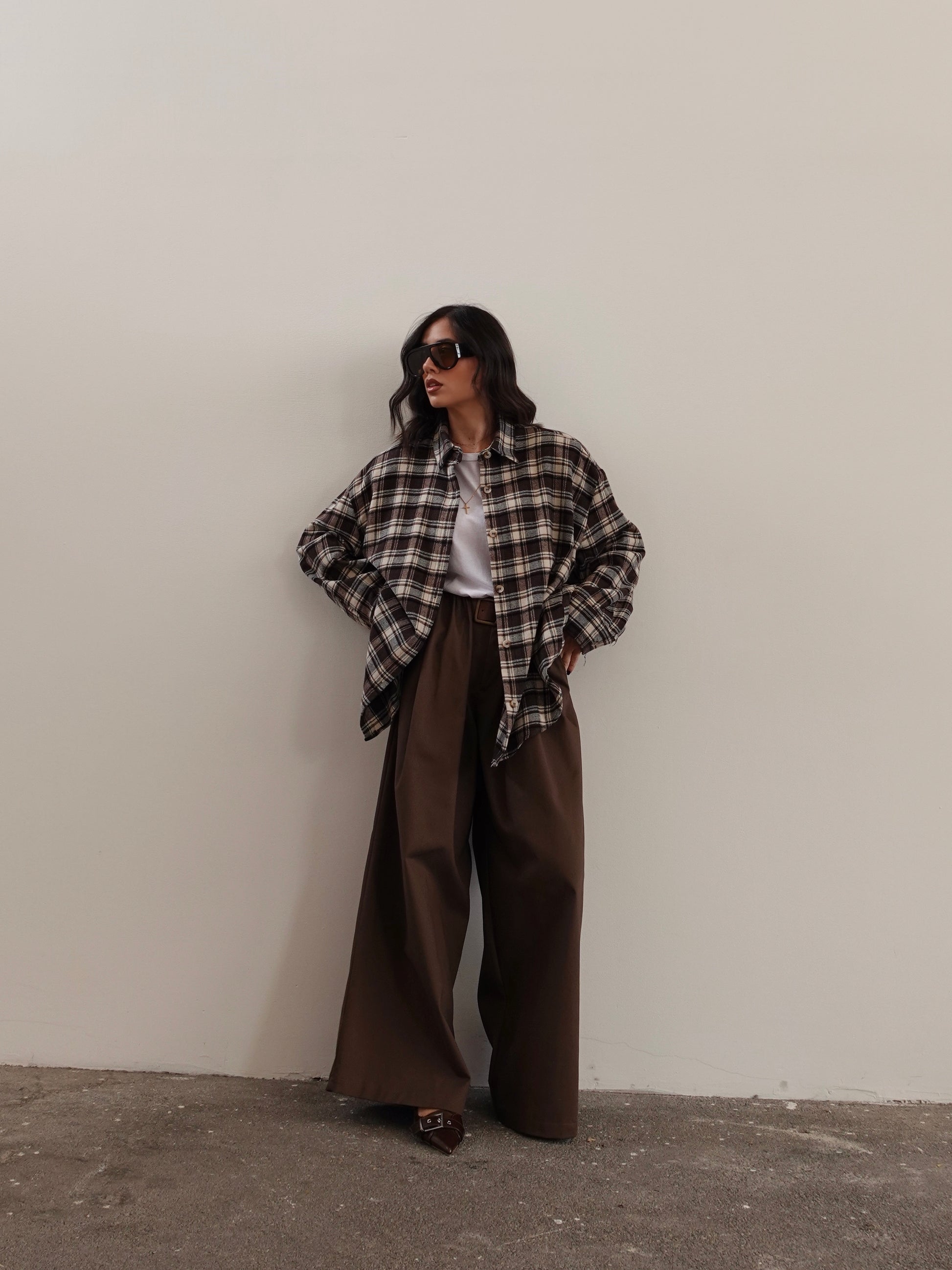 PANTALONI A PALAZZO BROOKLYN CON CINTURA - MARRONE 2610