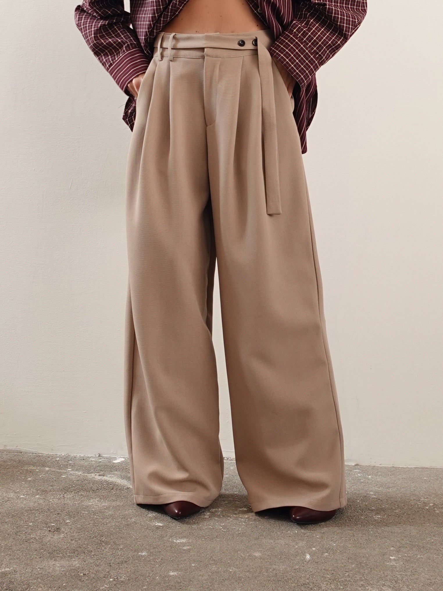 PANTALONI A PALAZZO CON CINTURA - SABBIA 8496