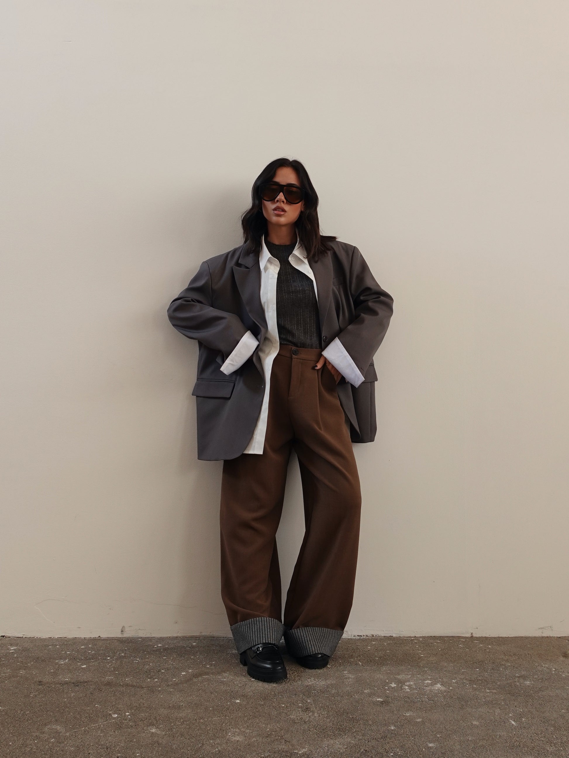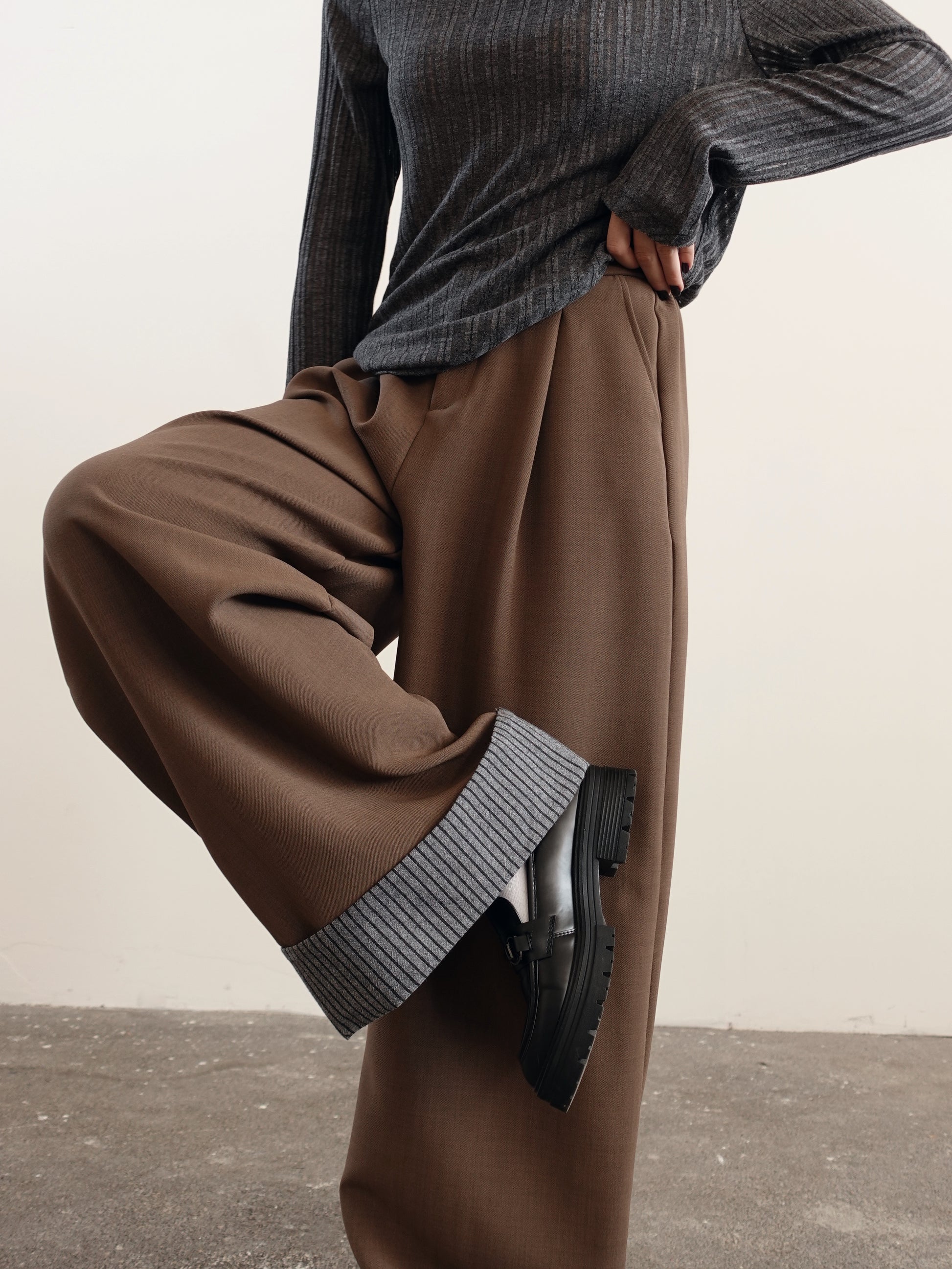 PANTALONI BAGGY CON PIEGA A RIGHE - CAFFE' 15600