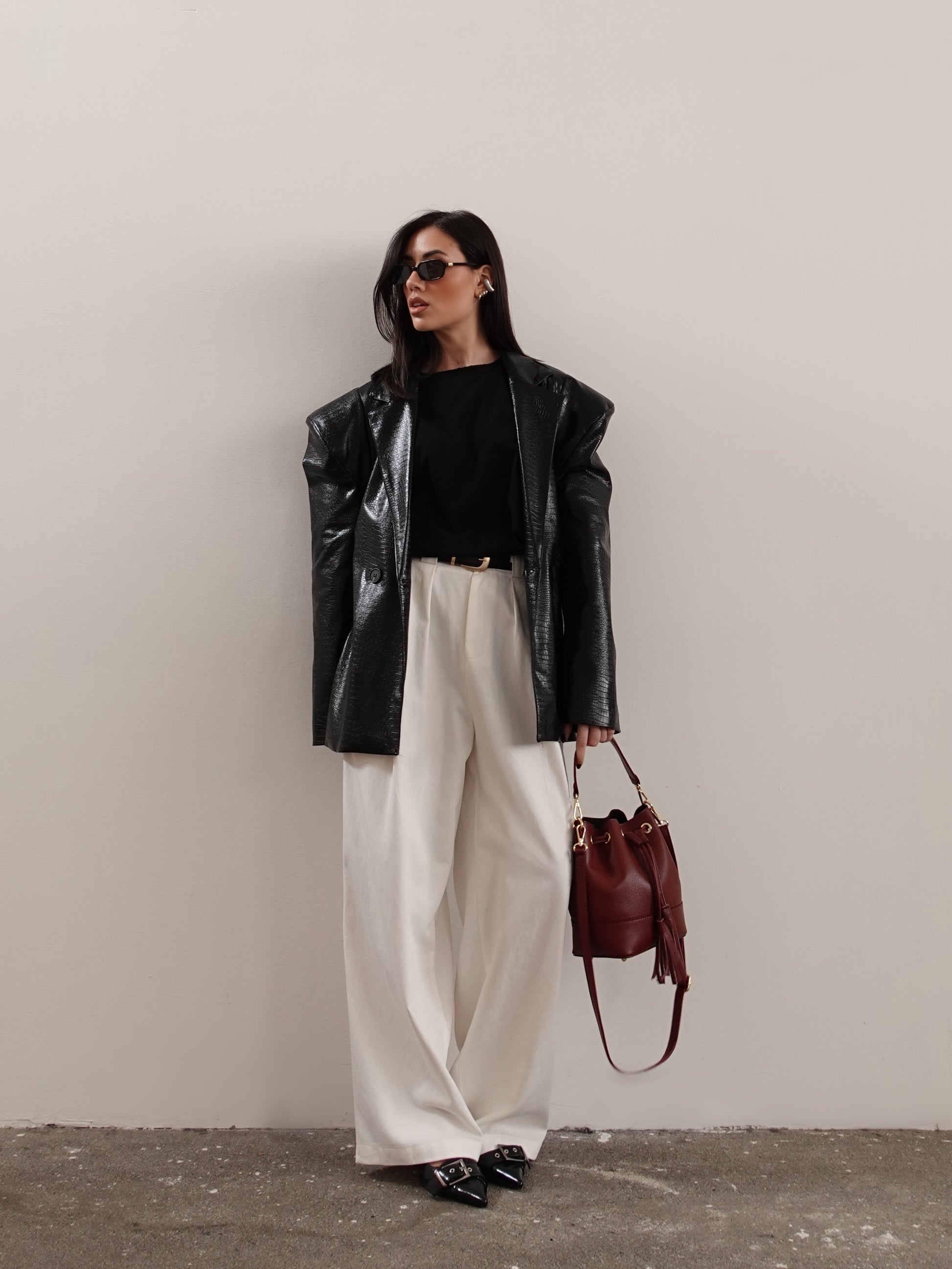 PANTALONI CARROT FIT CON CINTURA - BIANCO 14737