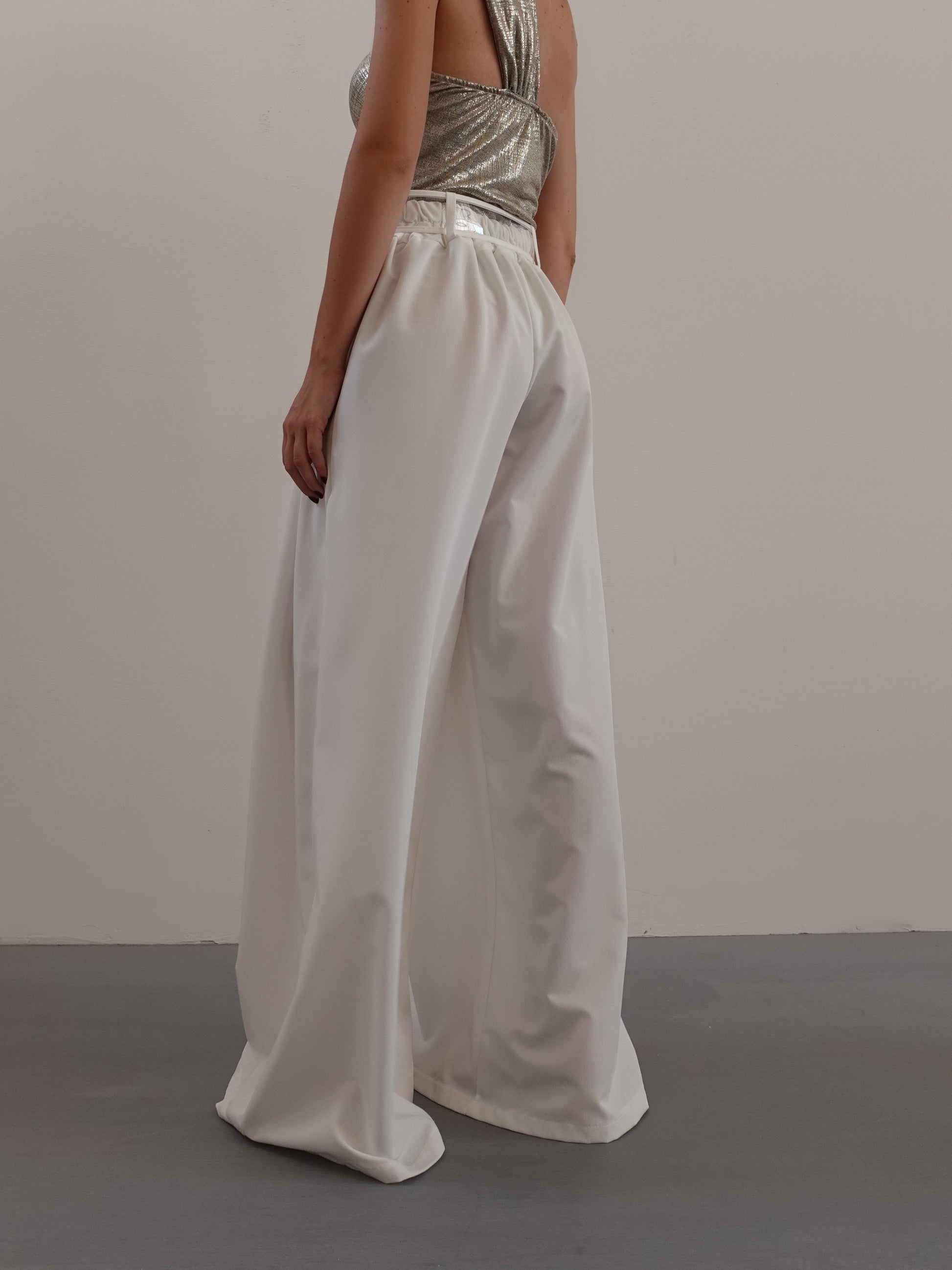 PANTALONI GAMBA AMPIA CON CINTURA - BIANCO 246001