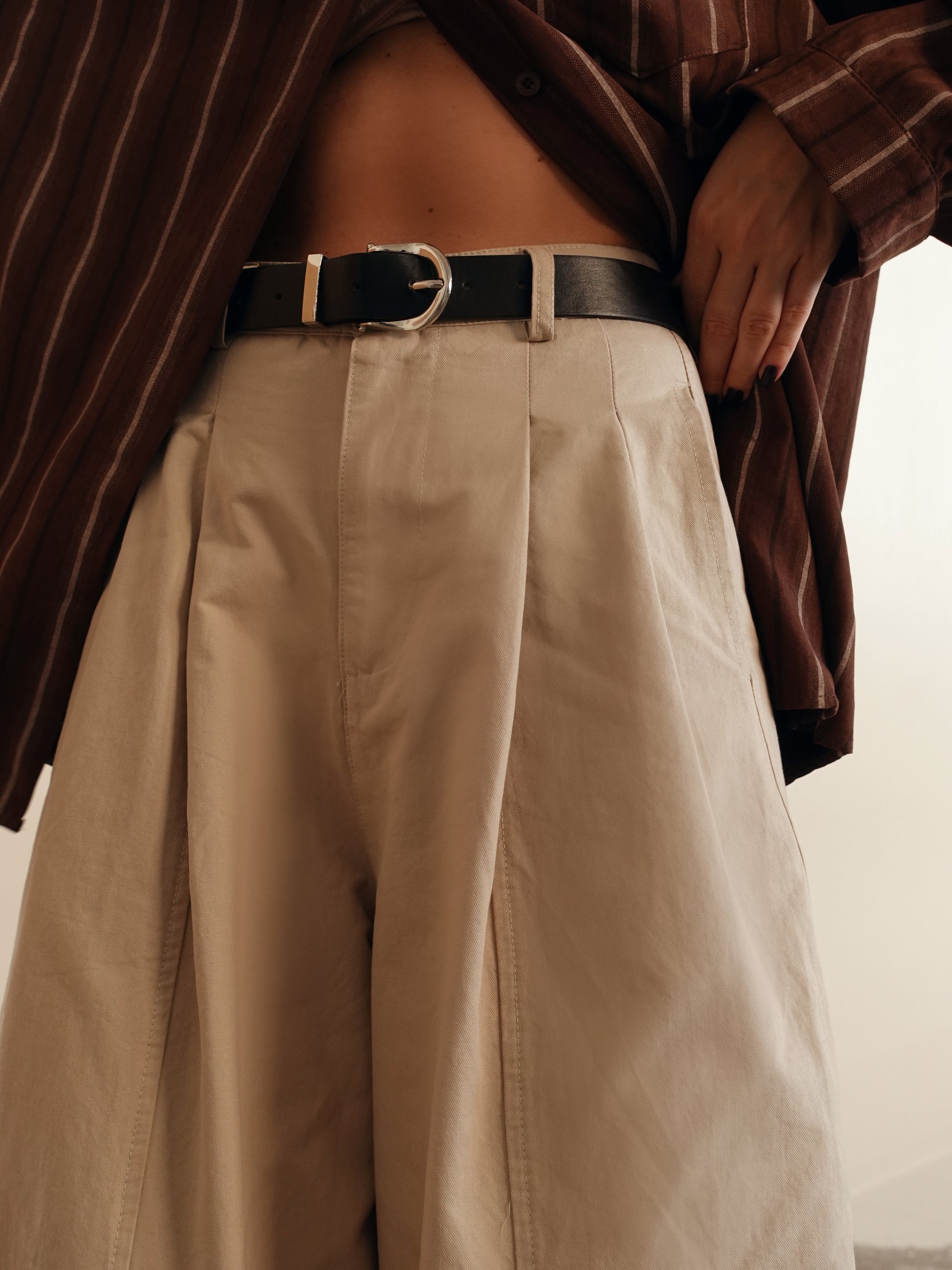 PANTALONI IN COTONE A PALAZZO CON CINTURA - BEIGE 14740