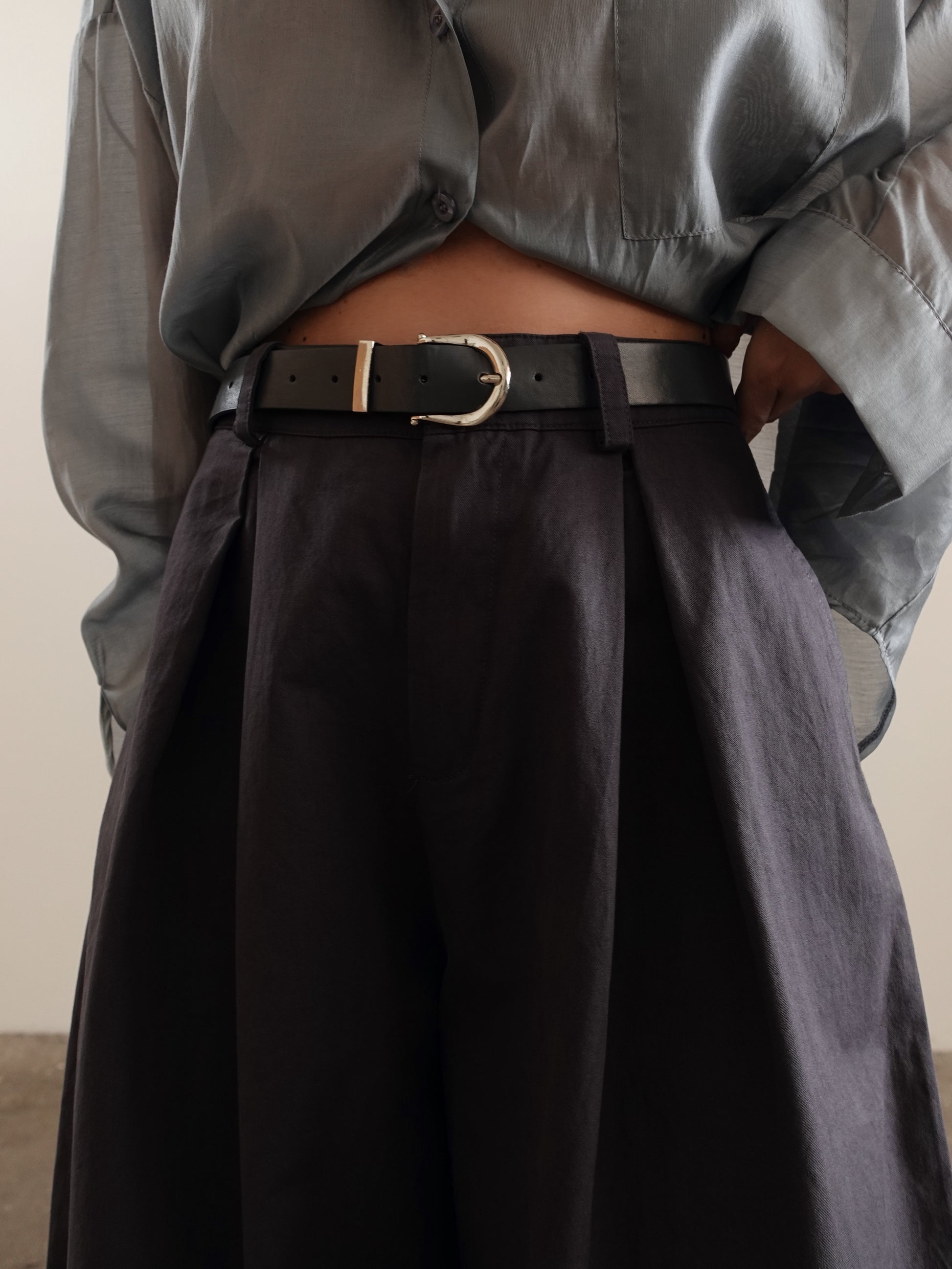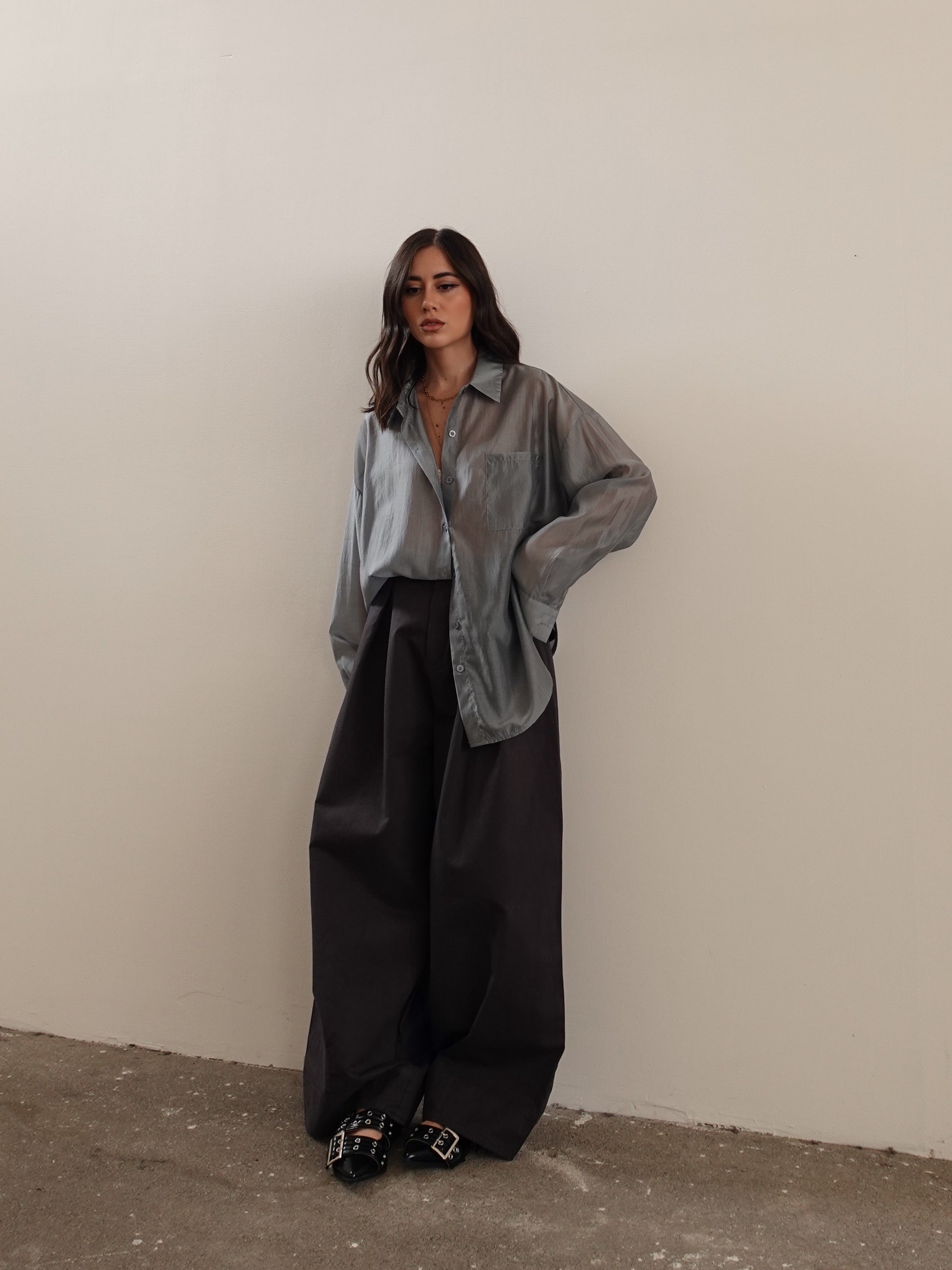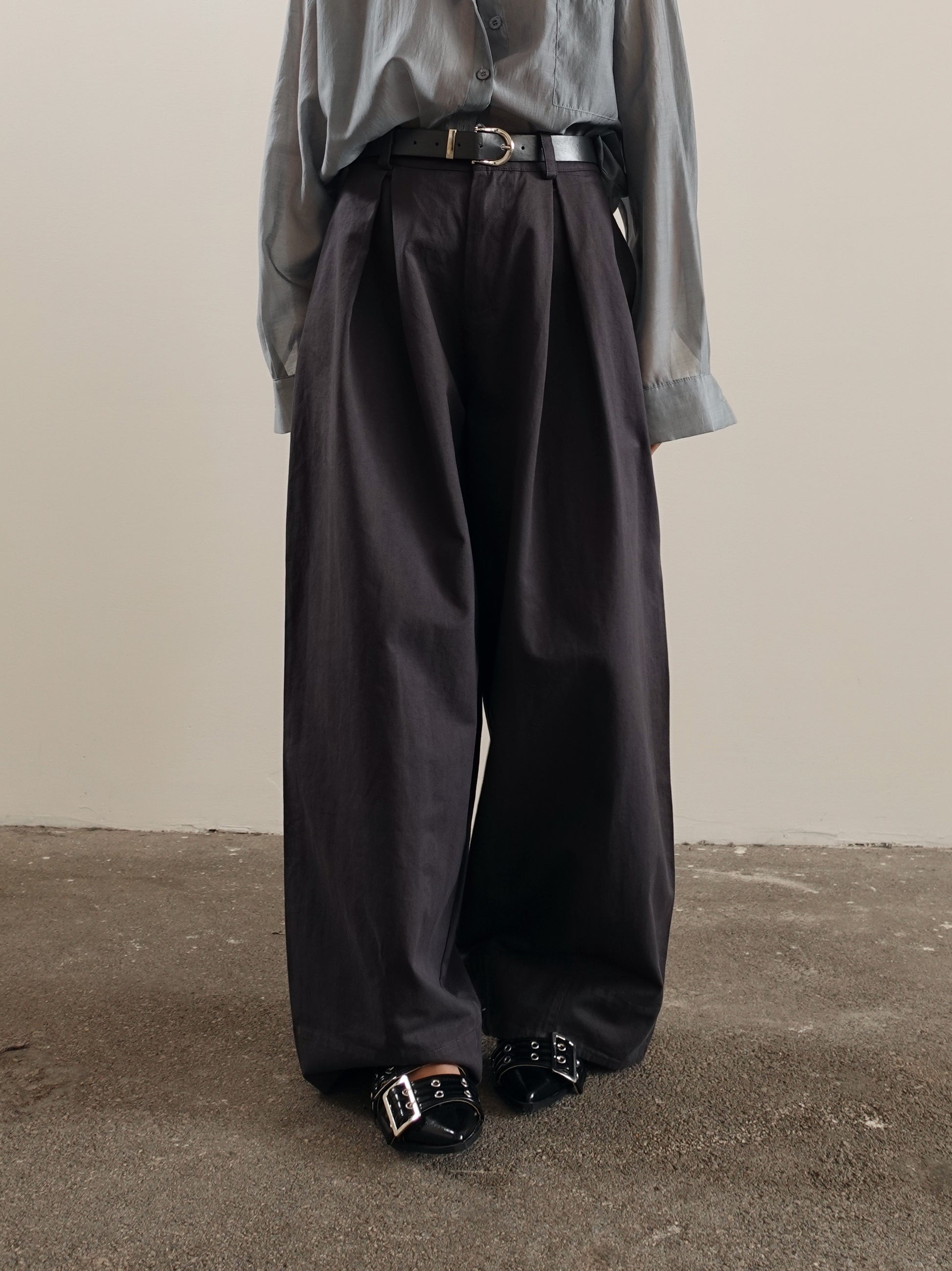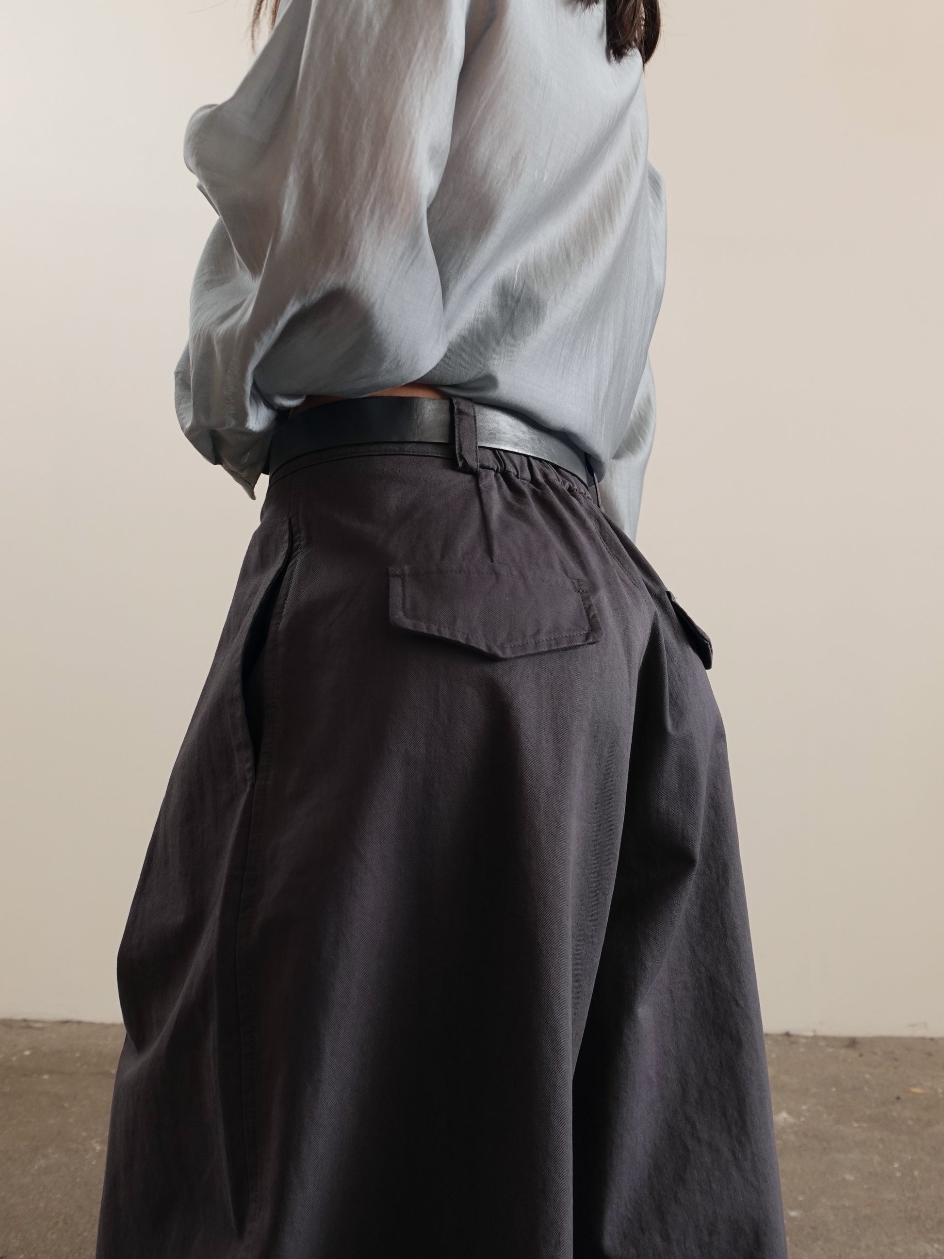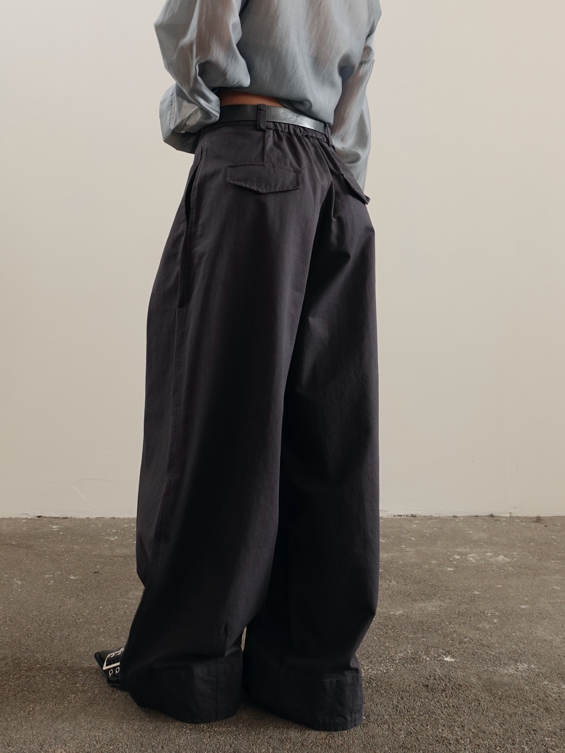 PANTALONI IN COTONE BAGGY BALLOON CON CINTURA - GRIGIO 14741
