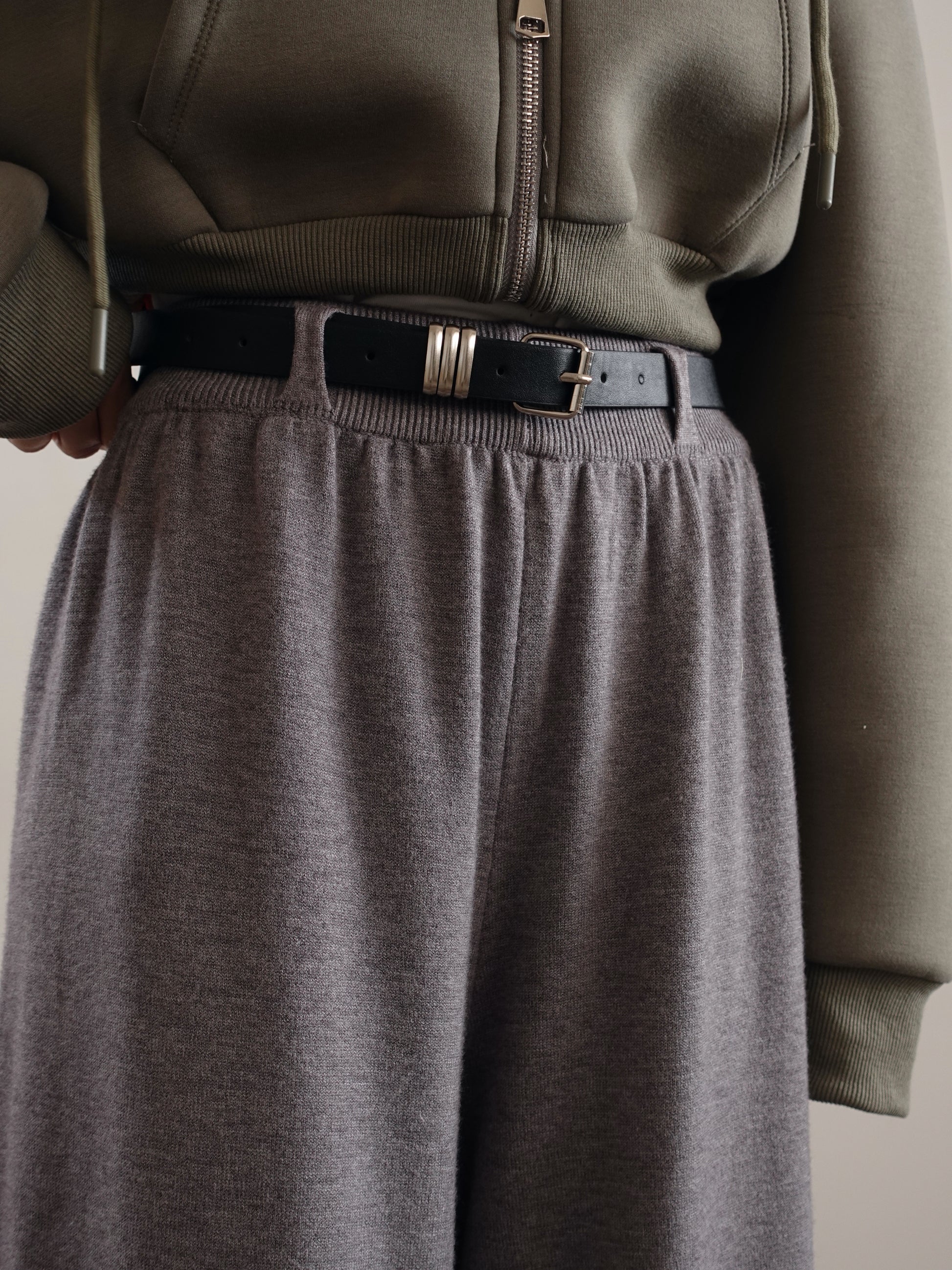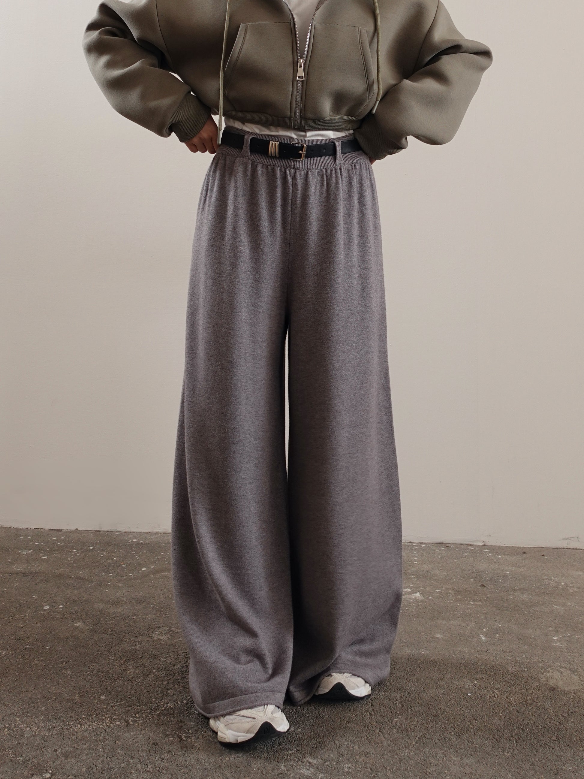 PANTALONI IN MAGLIA WIDE LEG CON CINTURA - GRIGIO 15674