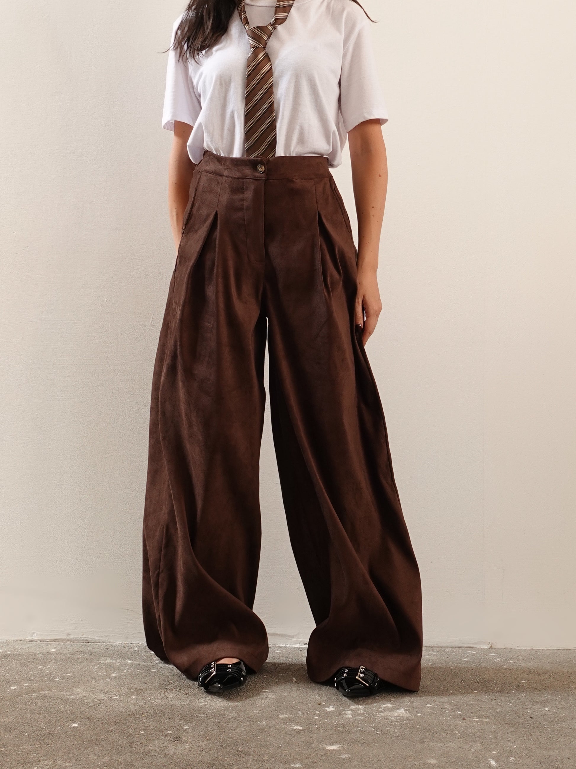 PANTALONI PALAZZO SCAMOSCIATI - MARRONE 20270