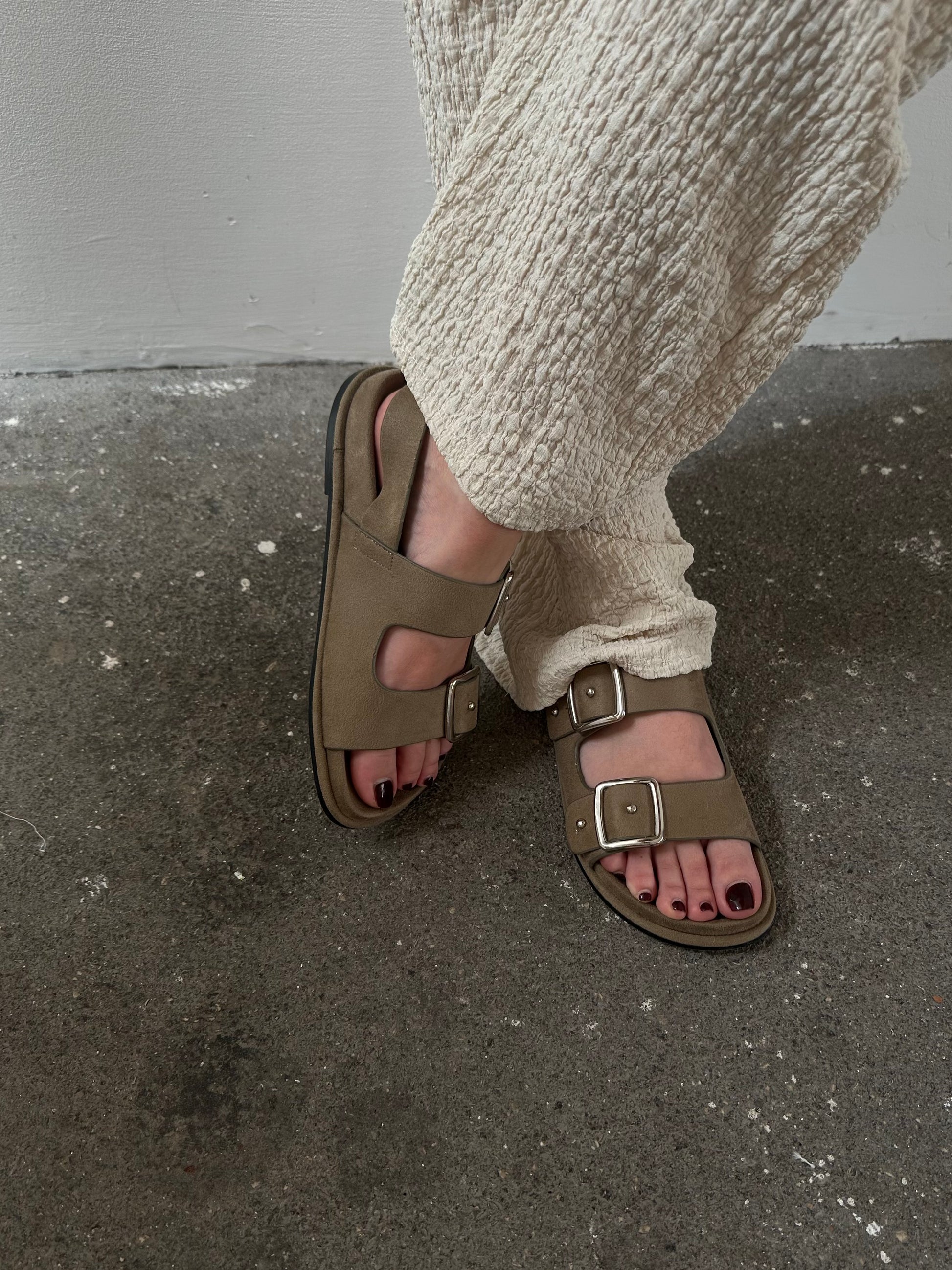 Questi sandali con borchie in elegante tonalità khaki uniscono comfort e stile senza compromessi. Il design alla moda con dettagli borchiati aggiunge un tocco di carattere, mentre la struttura ergonomica garantisce comodità per tutto il giorno. Perfetti per completare i tuoi outfit estivi con un elemento di tendenza che non passa inosservato.