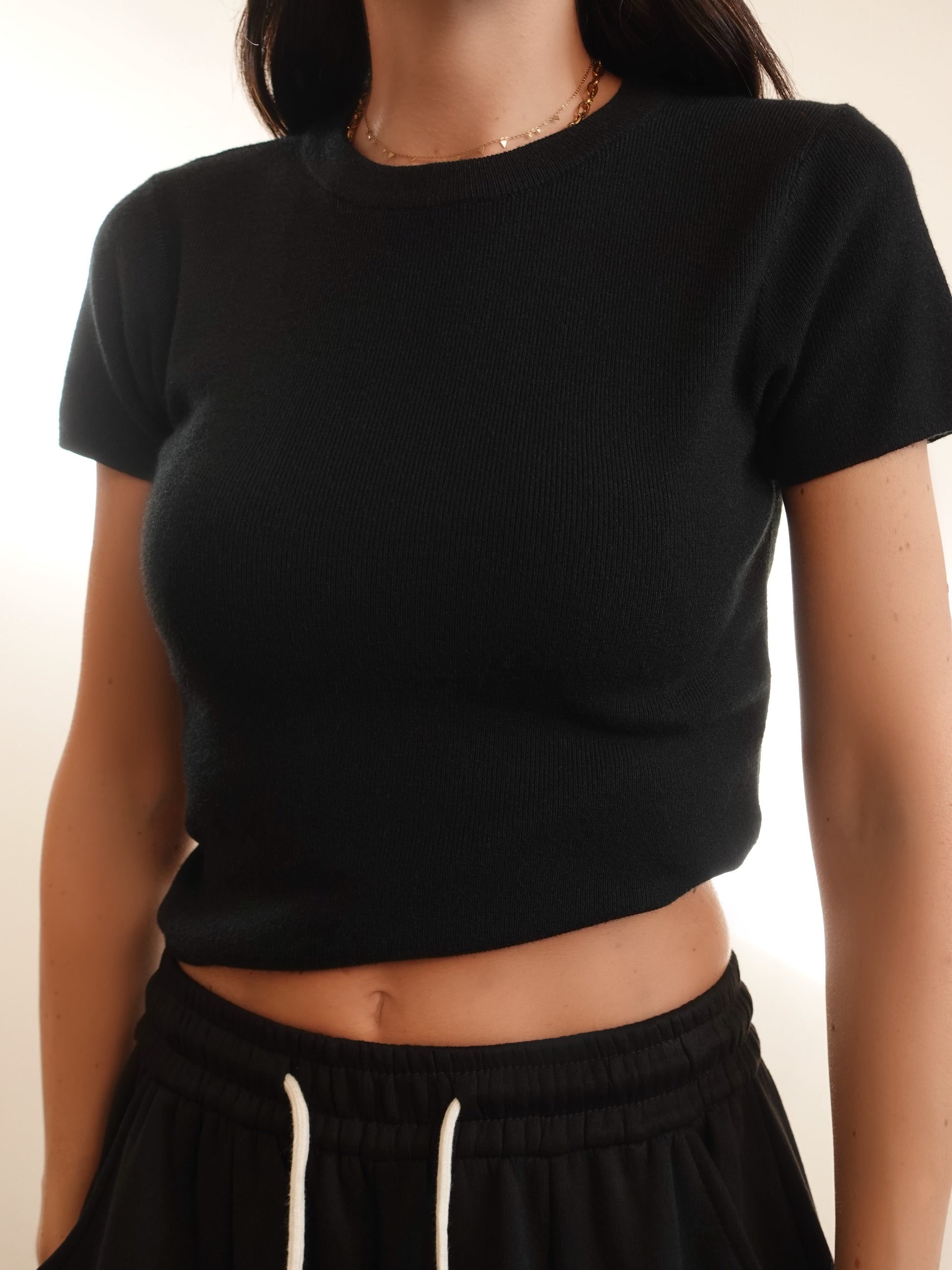 T-SHIRT CROP IN MAGLIA - NERO 3101