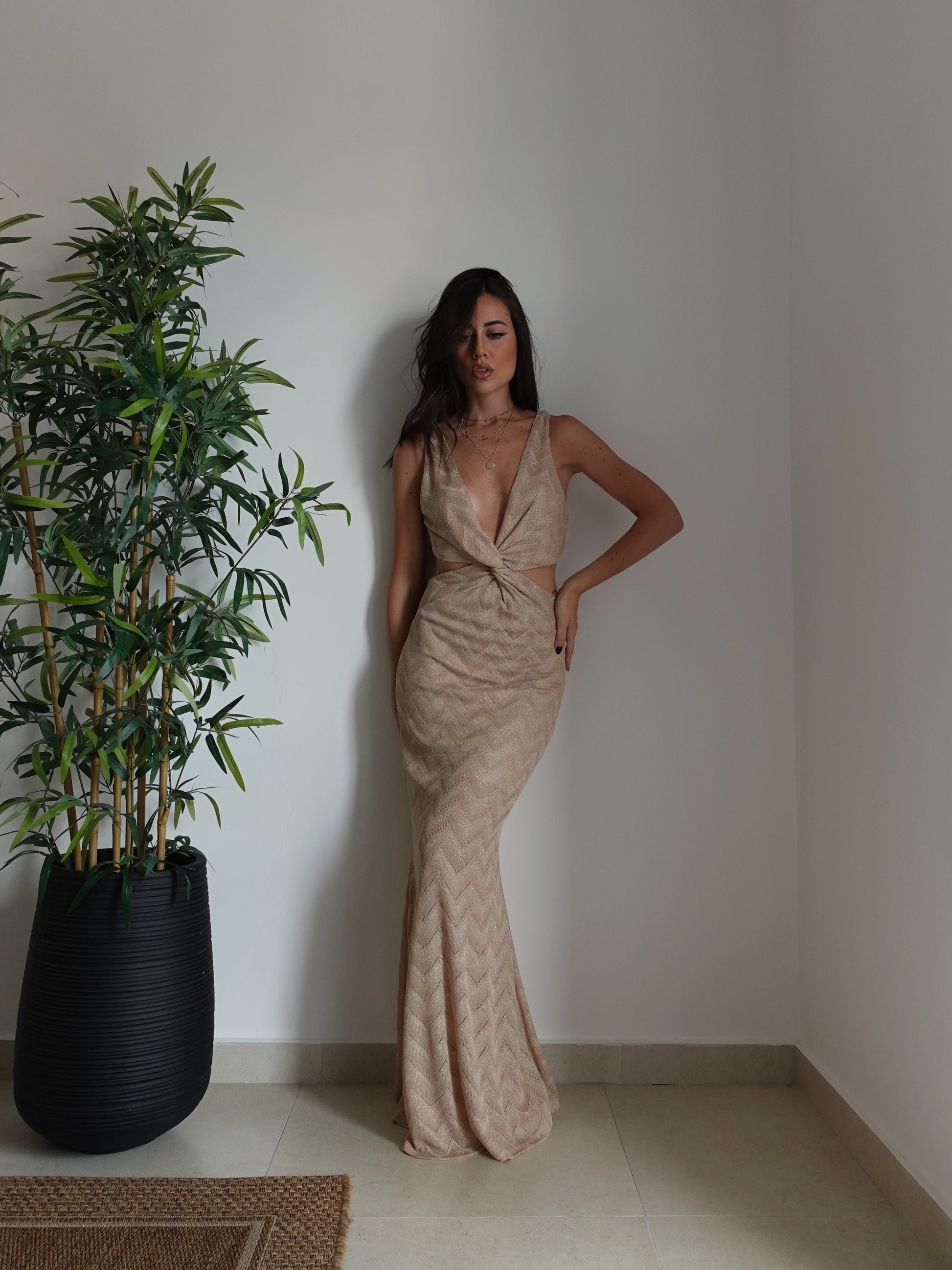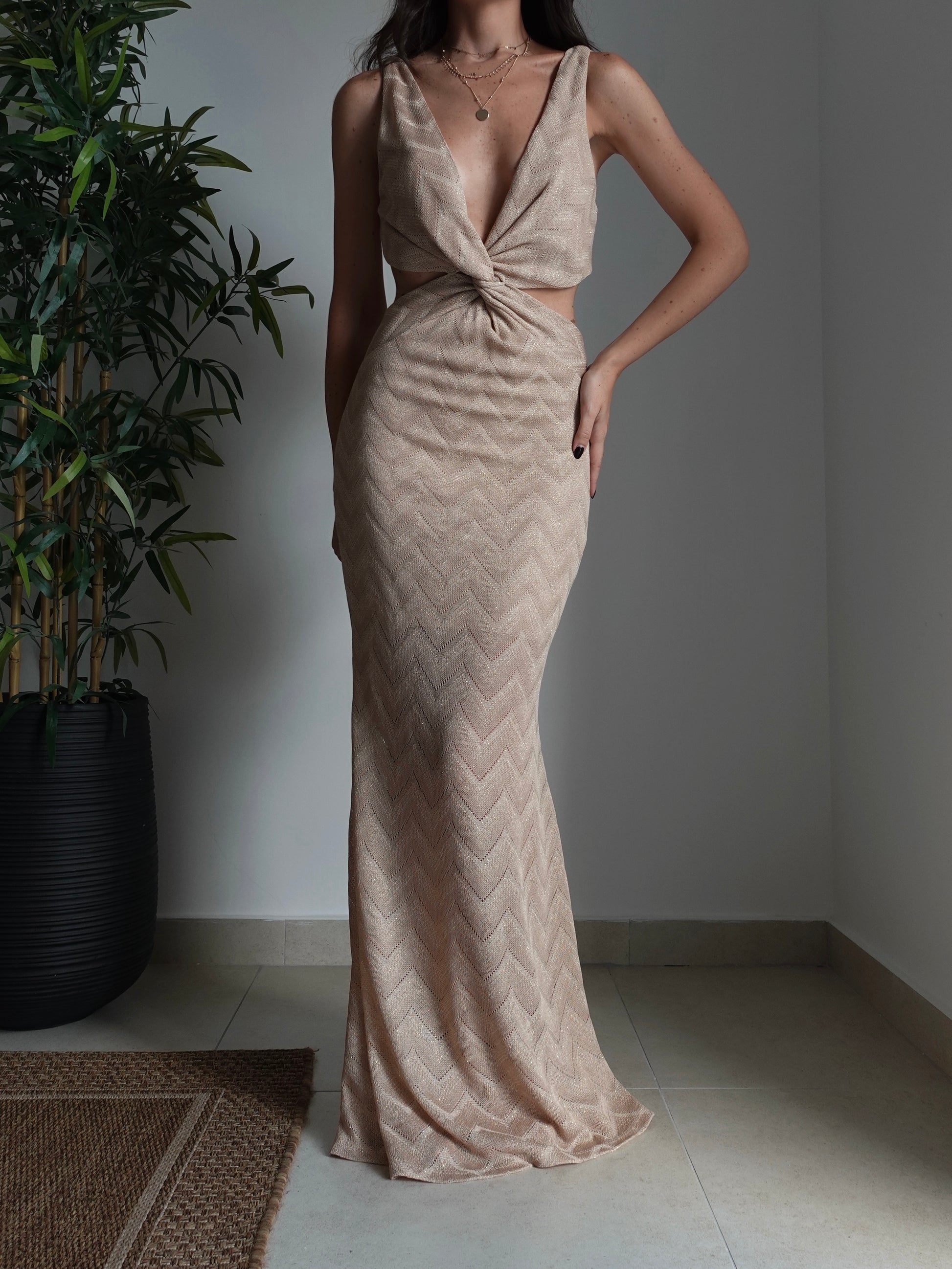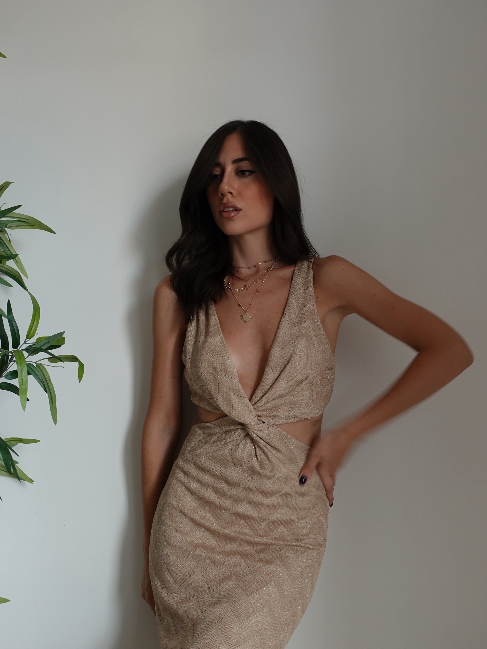 VESTITO CUT-OUT KENYA IN LUREX - ORO 14018